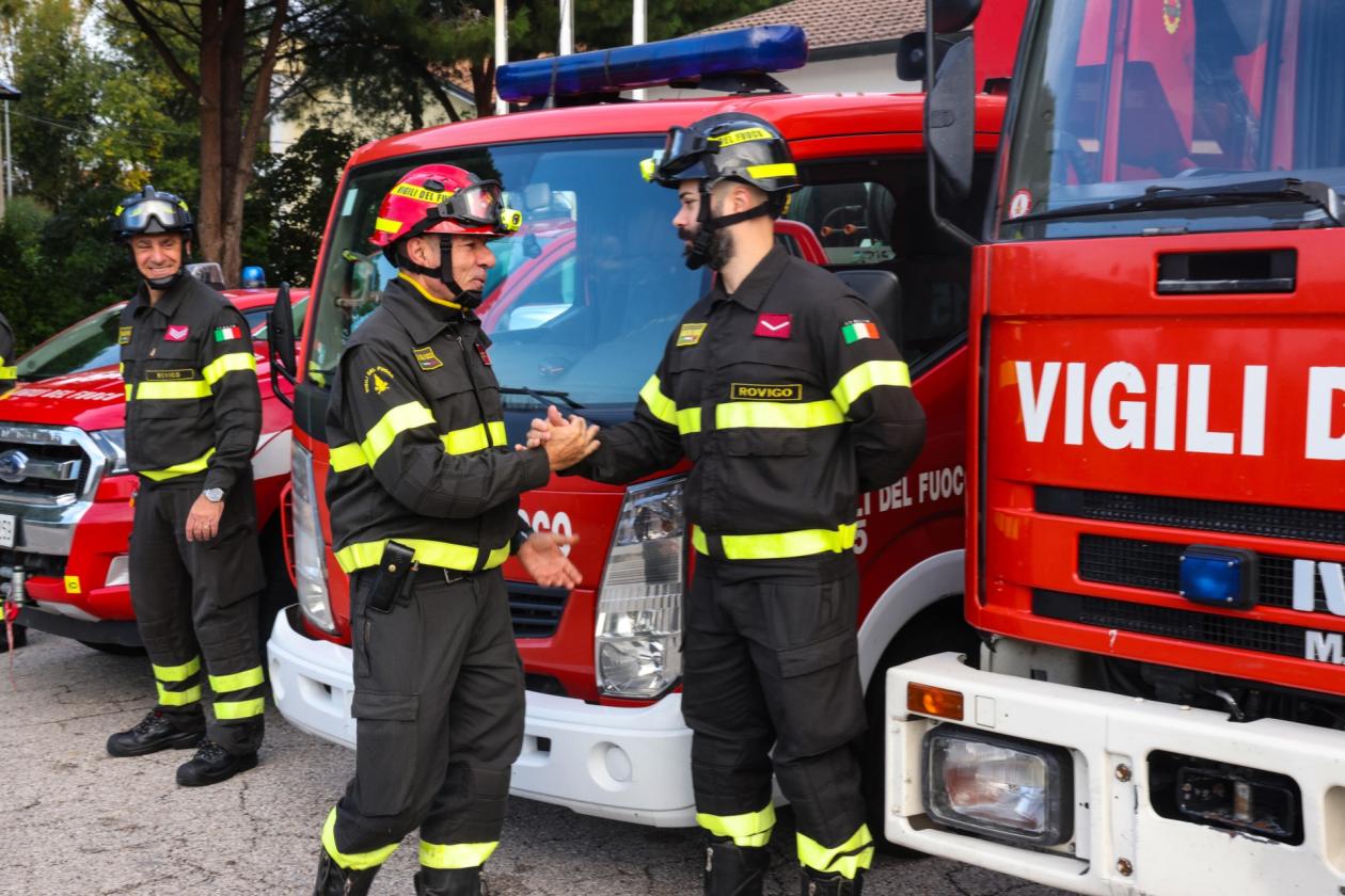 Una vita in divisa, a condividere con i colleghi momenti difficili, momenti indimenticabili, tragedie, salvataggi, entusiasmi, amarezze. E, all’ultimo turno, sono tutti lì, per te, a darti un abbraccio, tra il suono delle sirene. E’ stato un momento magico, quello vissuto al distaccamento dei vigili del fuoco di Adria, domenica scorsa, per il saluto al Capo Squadra Esperto Luca Visentin, una delle “colonne” del gruppo dei pompieri di Adria.