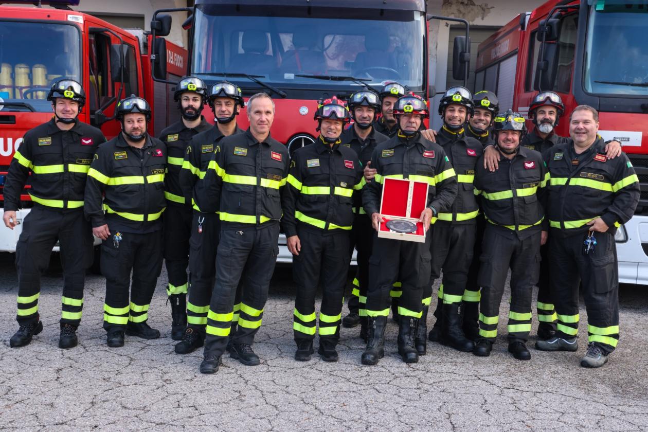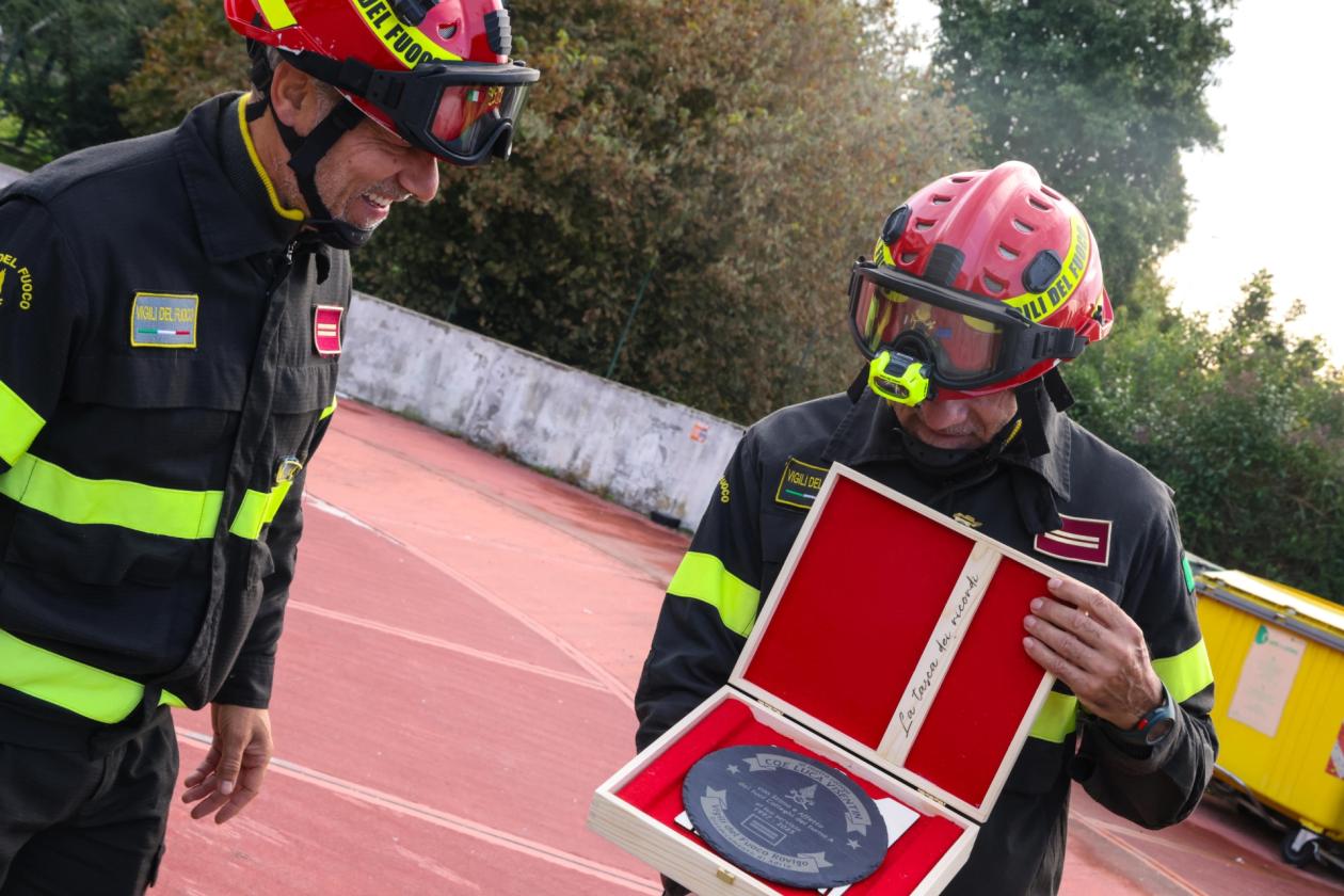 I colleghi, da parte loro, gli hanno voluto dire, con un saluto davvero speciale, che sarà sempre parte della grande famiglia dei vigili del fuoco. E, oltre alla passerella tra l’inno nazionale, l’alzabandiera e gli abbracci di fronte ai mezzi schierati, con le sirene in funzione, hanno voluto dedicargli una targa.