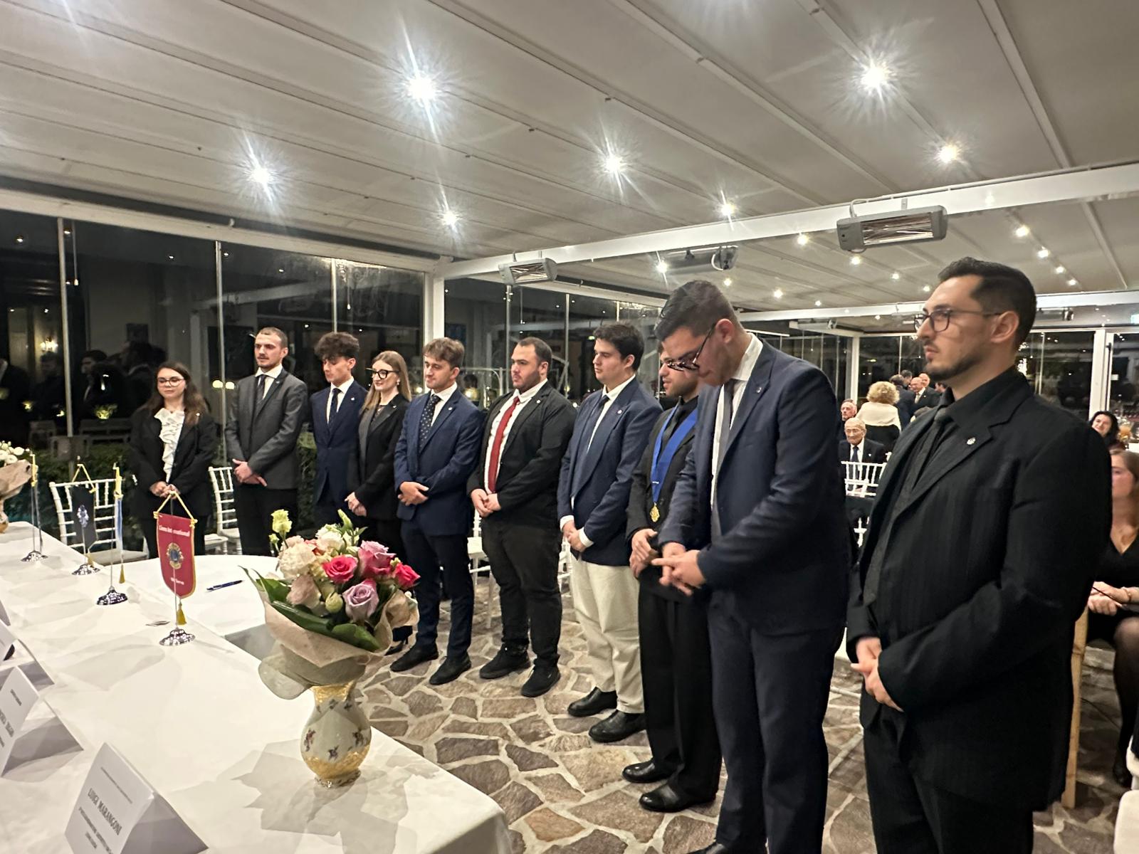 Dopo il tocco di campana e i consueti inni, largo alla cerimonia vera e propria con la firma della carta costituzionale di avvio del gruppo e di spillatura dei ben 11 soci fondatori: Nicola Sergi, presidente, Matteo Zeggio, vice presidente,Alessandro Secondi, segretario, Luca Irianni, segretario, Filippo Zangheratti, tesoriere, Matilde Rigolin, cerimoniere, Cosimo Damiano Carpignano, censore, Giulia Zambello, Francesco Sterza, Matteo Benazzo e Marco Cappato.