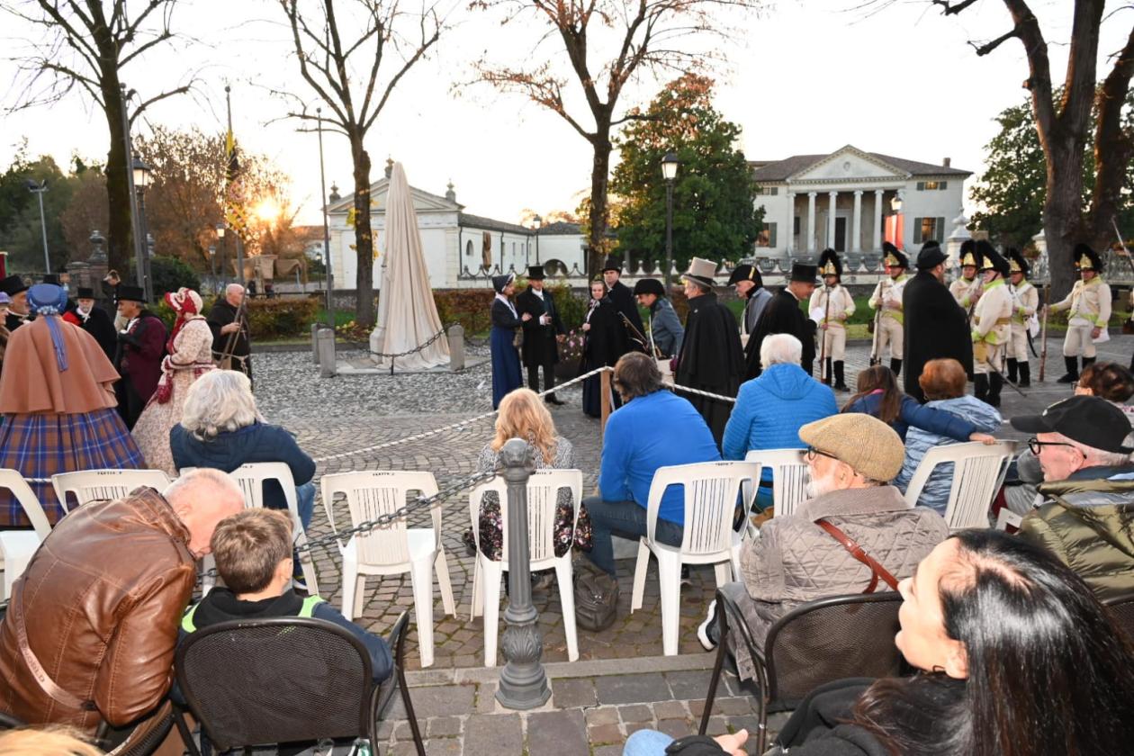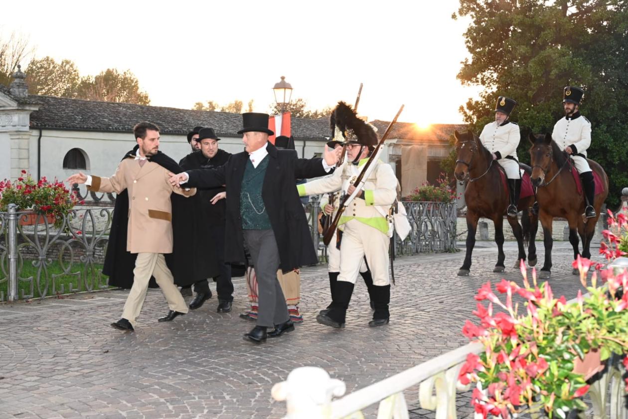 Il Banchetto Segreto dell’11 novembre 1818, organizzato dai Carbonari locali nella storica Villa Molin Avezzù. Alle 14, proprio nella suggestiva cornice della villa, è andata in scena la rievocazione storica dell’incontro clandestino che segnò l’inizio della repressione austriaca contro i patrioti polesani.