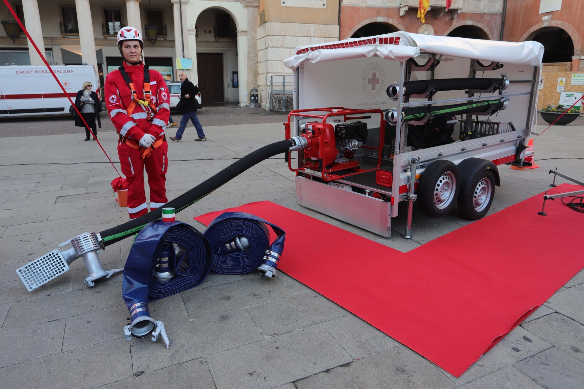 ROVIGO - In piazza Vittorio, ieri pomeriggio, si è tenuta la cerimonia ufficiale di consegna del nuovo carrello attrezzato per le emergenze climatiche destinato alla Croce Rossa Italiana di Rovigo. Un mezzo completo di torre faro, motopompa, generatore e numerosi strumenti operativi che permetterà ai volontari di intervenire con maggiore rapidità ed efficacia in situazioni di allagamento, forte maltempo o criticità idrogeologiche.