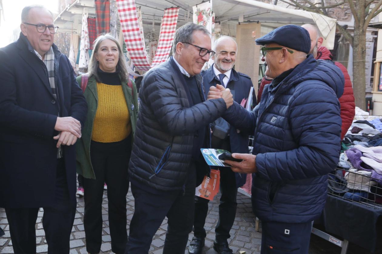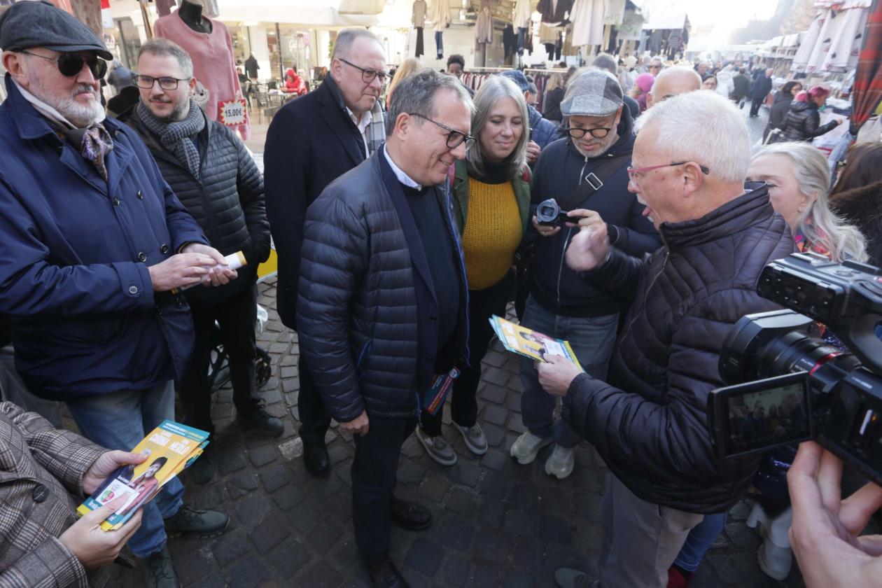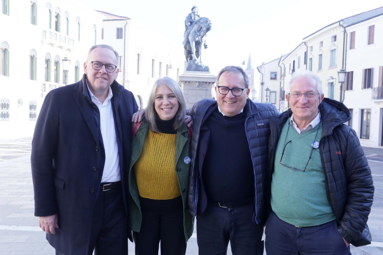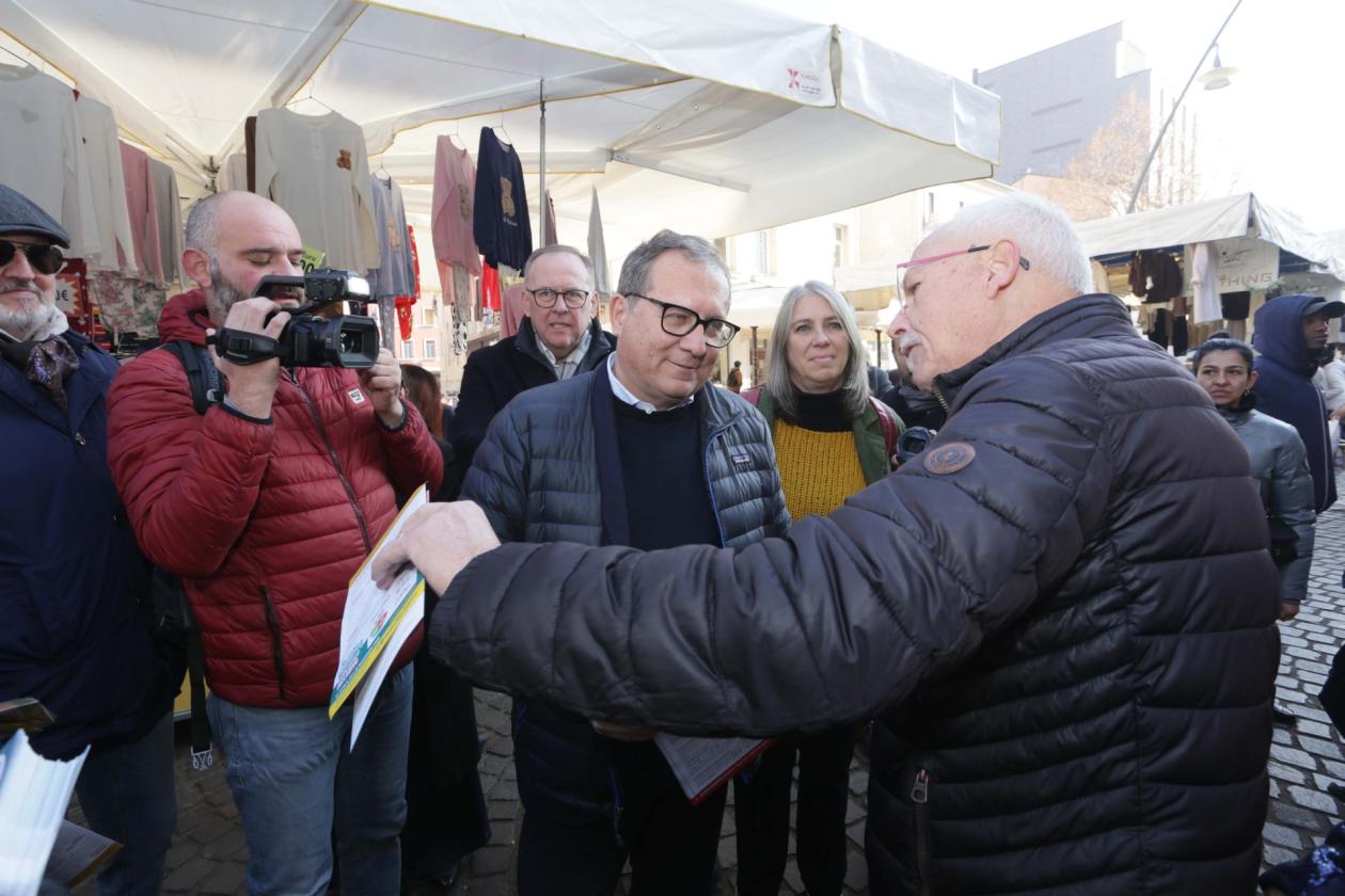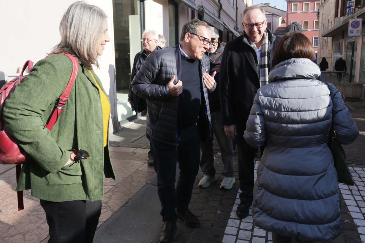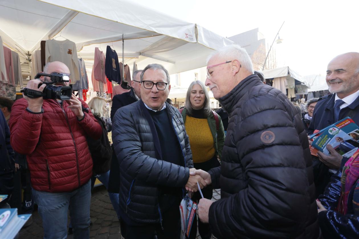 E’ stato in questo primo frangente della passeggiata in centro città che Manildo è stato raggiunto da Diego Bianchi e Pierfrancesco Citriniti che poi lo hanno seguito anche nella successiva passeggiata tra i banchi del mercato sul Corso, seguiti dalla nuvola di candidati consiglieri in rappresentanza di alcune delle liste della coalizione: dal segretario provinciale del Pd Angelo Zanellato insieme al sindaco di Gaiba Nicola Zanca ed Emanuela Pizzardo, tutti e tre candidati dem, al vicesindaco di San Martino di Venezze Vinicio Piasentini e Arabella Brognara candidati di Le civiche venete, passando per Claudio Curina ed Enrico Buoso candidati di Avs. Nel giro al mercato, tra volantini e santini distribuiti ai passanti e l’eco di “Blowin’ in the wind” di Bob Dylan suonata dal vivo all’angolo di via Grimani, la presenza dei reporter di La7 non è passata inosservata: in diversi si sono avvicinati al gruppo per stringere la mano a Diego Bianchi come pure a Manildo. Anche se il candidato presidente ha fatto da parafulmine pure alle lamentele di chi “in politica siete tutti uguali” e “non voto perché tanto non cambia mai niente”. Critiche che Manildo ha incassato con grande garbo e signorilità. Alla fine, il candidato presidente ha chiuso l’evento per spostarsi a Mestre dove era atteso ad un incontro elettorale mentre Bianchi e Citriniti si sono trattenuti a Rovigo ancora per qualche ora, in attesa del treno per rientrare a Roma.