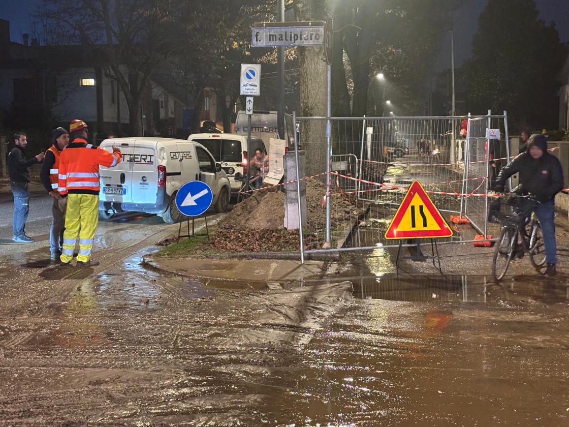 Emergenza a Rovigo, nel quartiere Commenda, per un vasto allagamento che, secondo le attuali informazioni, si è verificato all'incrocio tra via Benvenuto Tisi da Garofolo e via Malipiero. La massa di acqua e fango ha reso impraticabile la strada e sul posto sono intervenuti personale tecnico, vigili del fuoco e polizia locale. Secondo i primi riscontri, l'accaduto sarebbe da addebitare a una rottura.
