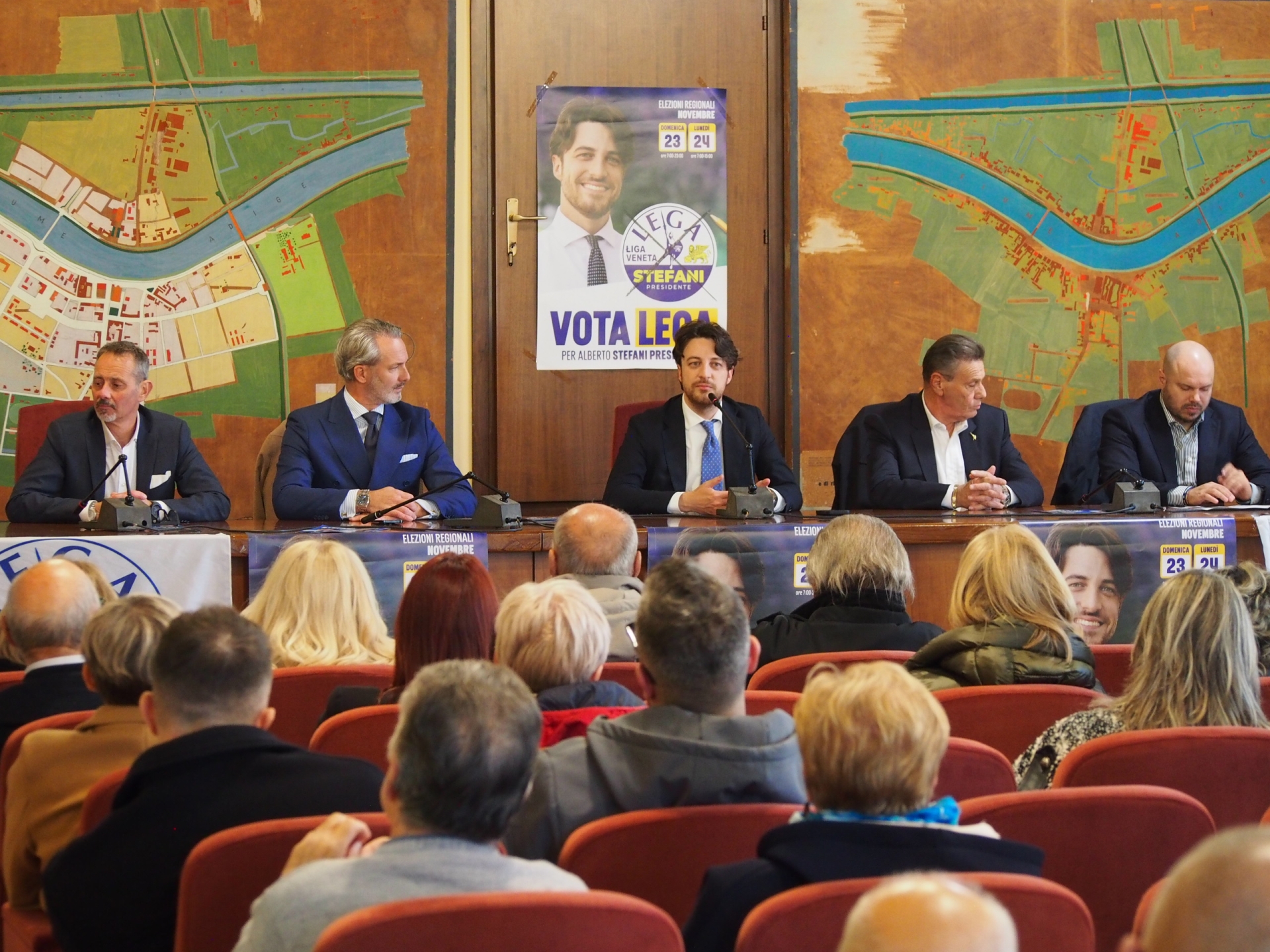 Stefani, prendendo parola, ha illustrato la propria visione amministrativa, insistendo sulla creazione di strutture sovracomunali capaci di rendere più efficienti i servizi oggi gestiti singolarmente dai municipi. Il candidato ha portato l’esempio della federazione del Camposampierese, dove era stato sindaco di Borgoricco, realtà che riunisce funzioni condivise per un bacino di circa 200mila abitanti. Sul fronte economico Stefani ha annunciato di aver chiesto che la delega allo sviluppo economico e alle imprese Made in Italy sia assegnata alla Lega, con l’intenzione di affidarla a una figura di fiducia in grado di dialogare quotidianamente con le realtà produttive.