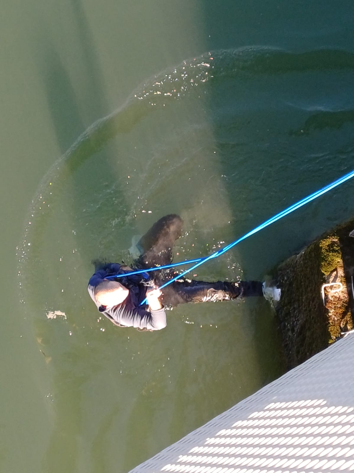 I vigili del fuoco, senza perdere un istante, vista la gravità della situazione, hanno lanciato all'uomo una corda per agganciarsi e hanno attuato le procedure di salvataggio in acqua. L'uomo avvolto da una corda è stato messo al sicuro e poi portato in salvo sul ponte.