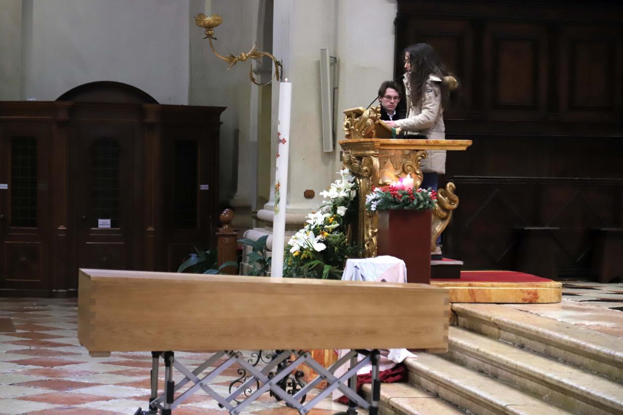 Deluca era “un genio”, un “uomo di grande cultura”, come lo hanno definito in molti, ma anche un uomo di grande energia. Ancora sconvolti e in lacrime, studenti, accademici e amici, hanno voluto tributare l’ultimo saluto all’artista e direttore di orchestra, che era dotato di grande carisma. Tra i banchi la figlia Sarah e la sua compagna, Giorgia Bisio, docente e responsabile di plesso della scuola secondaria Venezze di Rovigo. C’era anche, con la fascia tricolore, il vicesindaco Andrea Bimbatti e il direttore del conservatorio Stefano Romani.