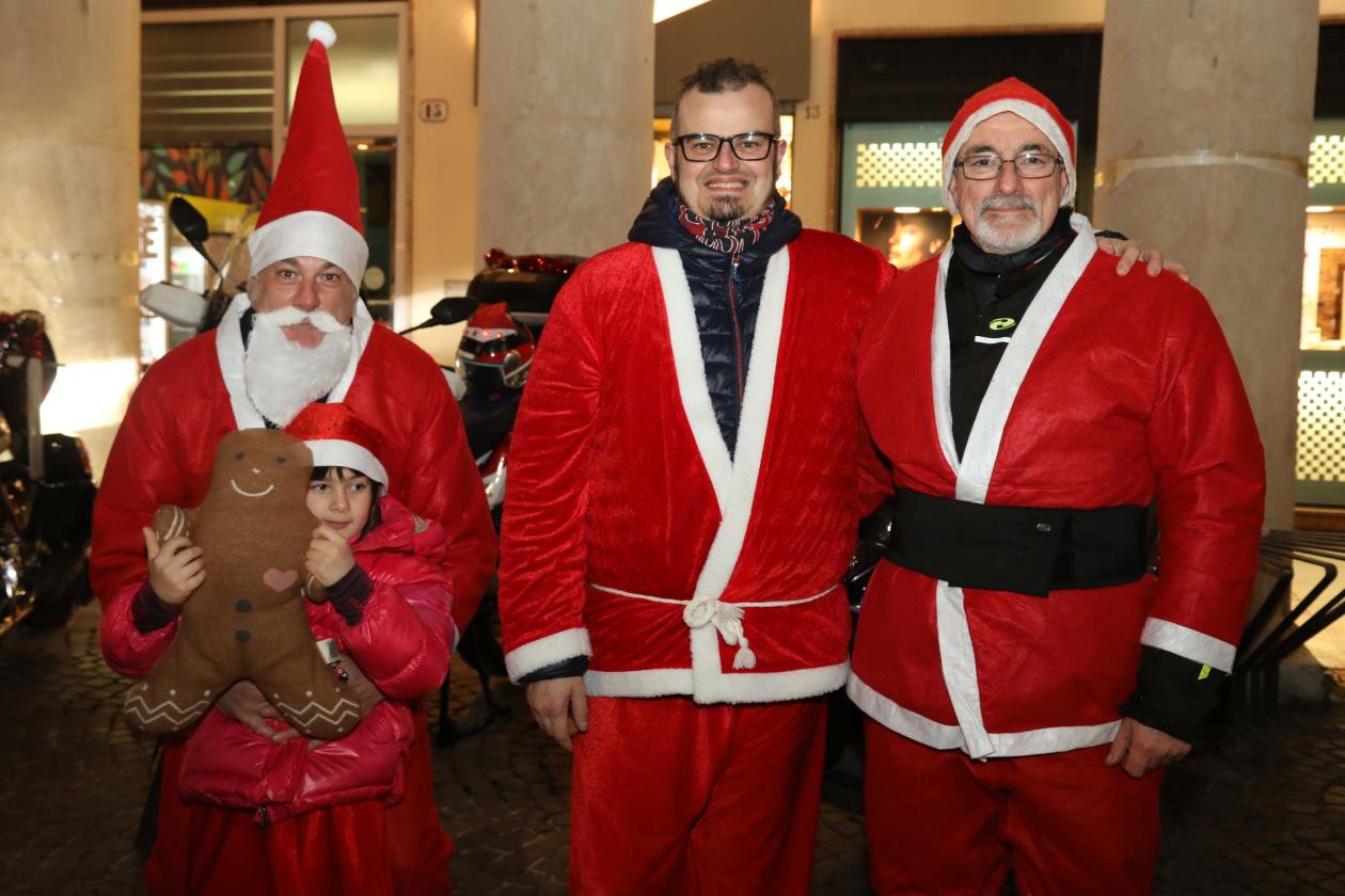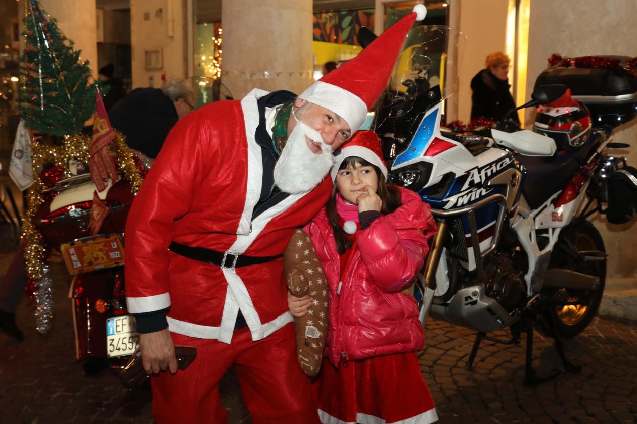 Babbo Natale è arrivato rombando. Oggi pomeriggio 20 dicembre, nel centro di Rovigo, si è rinnovata quella che ormai è una vera e propria tradizione della nostra città: il motoclub Le Fiamme del Polesine, infatti, ha fatto il proprio ingresso nel villaggio natalizio di piazza Vittorio in sella ai bolidi rombanti, addobbati per l’occasione con luci e decorazioni natalizie.