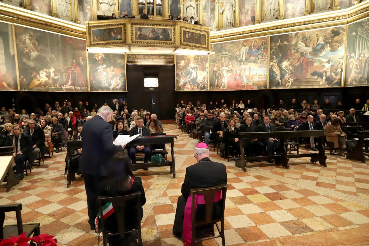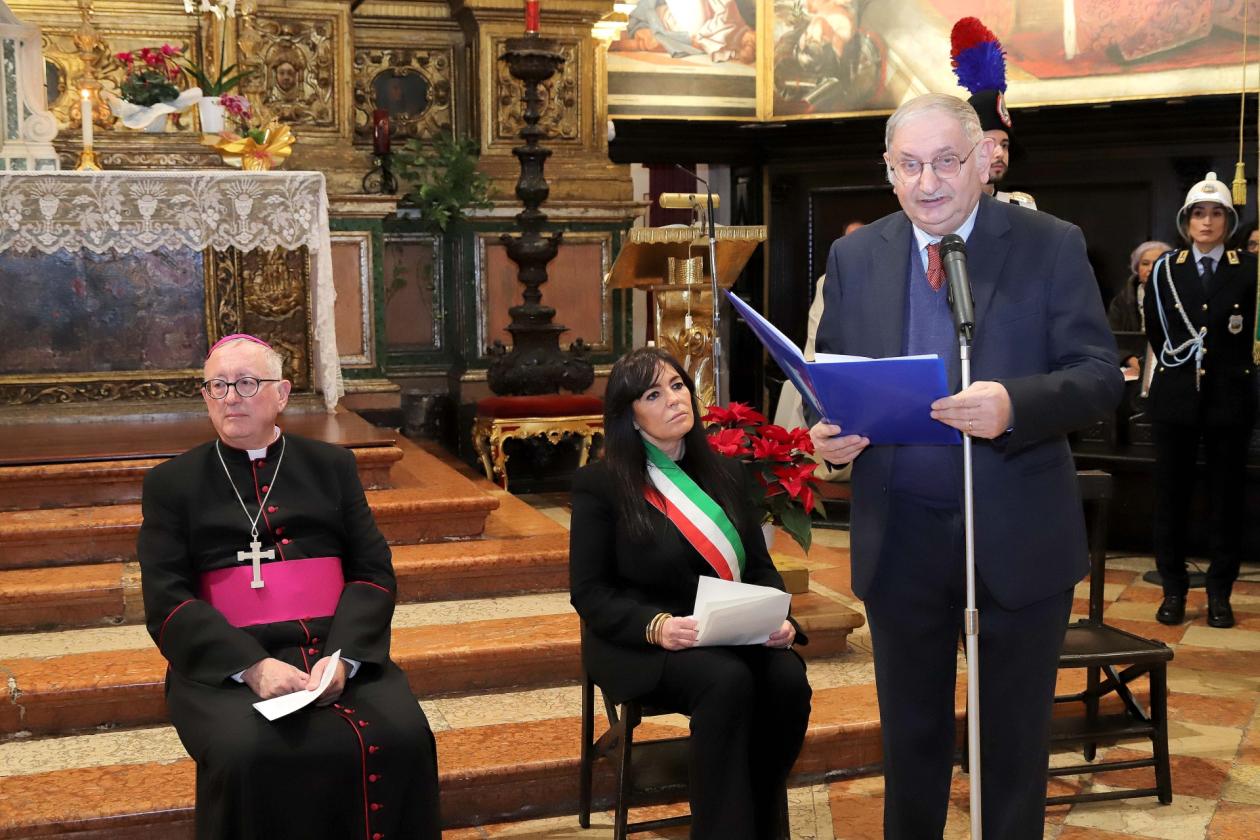 Tempo dedicato all’altro con interesse per il bene comune, insomma, i connotati della vera spina dorsale di Rovigo. Ha aggiunto poi Cittadin: "Rovigo è città solidale senza mai perdere però responsabilità, accogliente senza perdere identità. Rovigo sa essere solidale ma anche ferma, vuole continuare a essere luogo sicuro per i nostri figli". Dopo l’introduzione del presidente del sindacato della Rotonda, Adriano Mazzetti, che ha ripercorso gli eventi significativi svolti nel corso degli ultimi mesi nel tempio, Pavanello ha ricordato, proprio guardando all’anno ormai alla fine: "E’ stato un tempo non facile a livello mondiale, ancora negli occhi abbiamo la tristezza dei conflitti sanguinosi che hanno interessato le diverse guerre in corso. Conflitti e disagio sociale che hanno visto un incremento proprio dai fenomeni accaduti anche qui da noi".