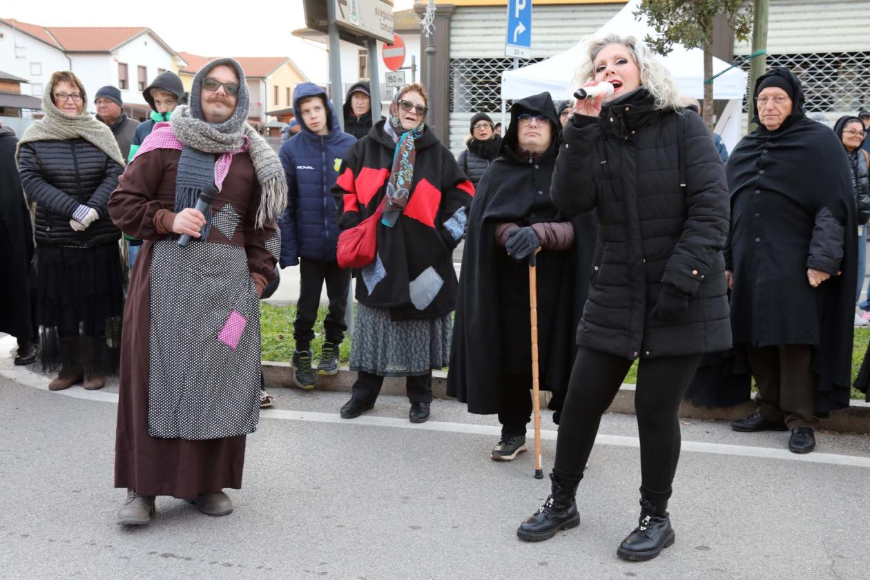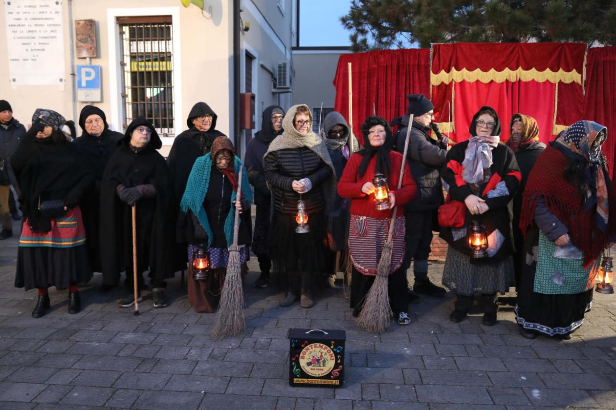I Bontemponi, in versione Befana con tabarri, lanterne e campanacci, hanno accompagnato la festa con i canti beneauguranti “Bunin Bonano” e “Ghe chi la vecia cà vien da Milan”, testi del cantastorie bottrighese Primo Armaroli, detto Conchelo.