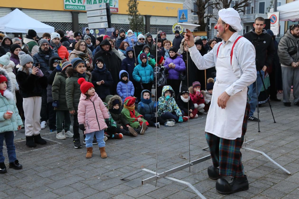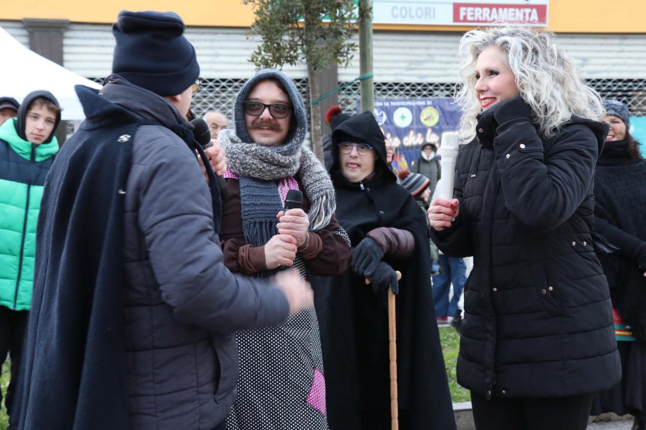 Una volta messa in sicurezza, la “vecchietta” è arrivata in piazza per distribuire gratuitamente la calza a tutti i bambini presenti.