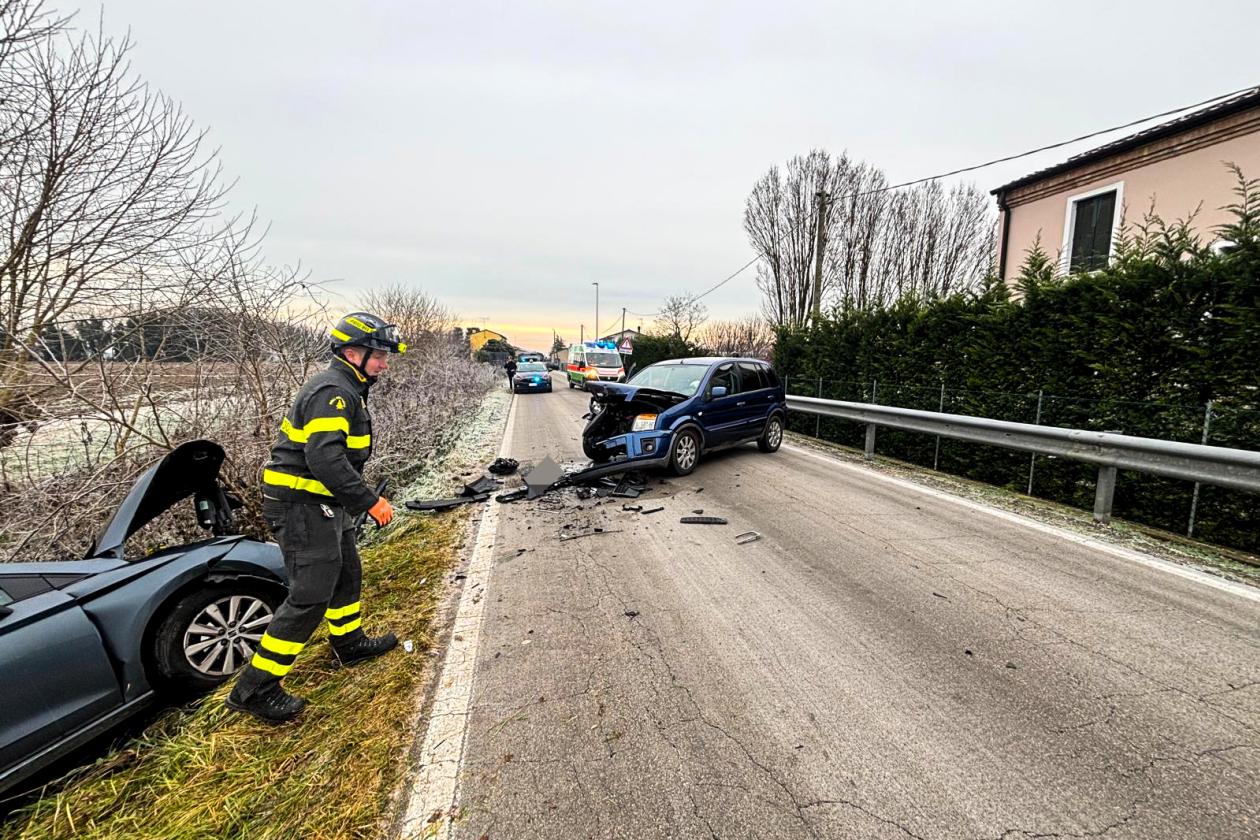 Una delle due auto, in particolare, è stata scagliata sulla scarpata a bordo strada, mentre l'altra è rimasta sulla carreggiata, con la parte anteriore distrutta dall'impatto e intraversata, obbligando alla chiusura della provinciale per tutta la durata delle operazioni. Come forze dell'ordine, sono arrivati i carabinieri e il personale della polizia locale di Adria, guidato dal comandante Pierantonio Moretto.