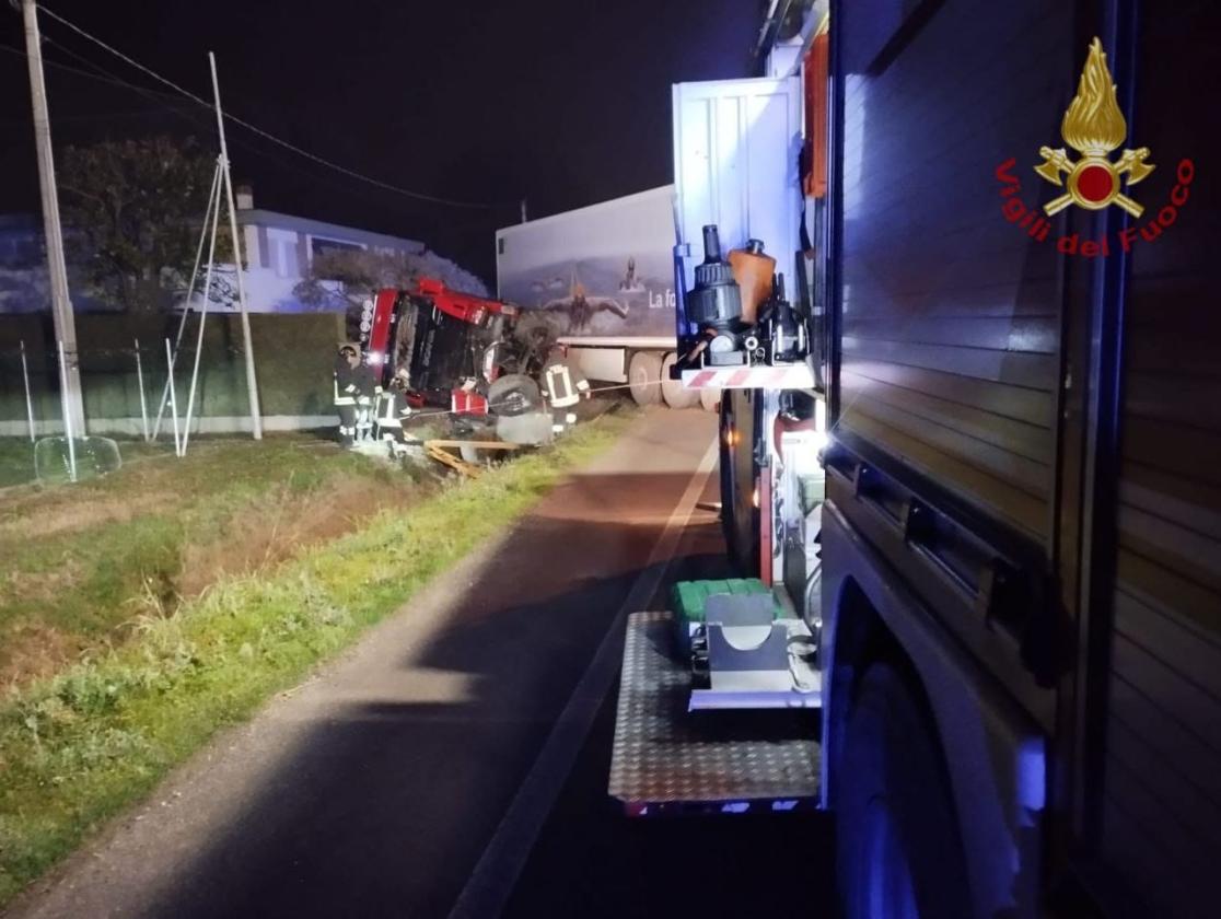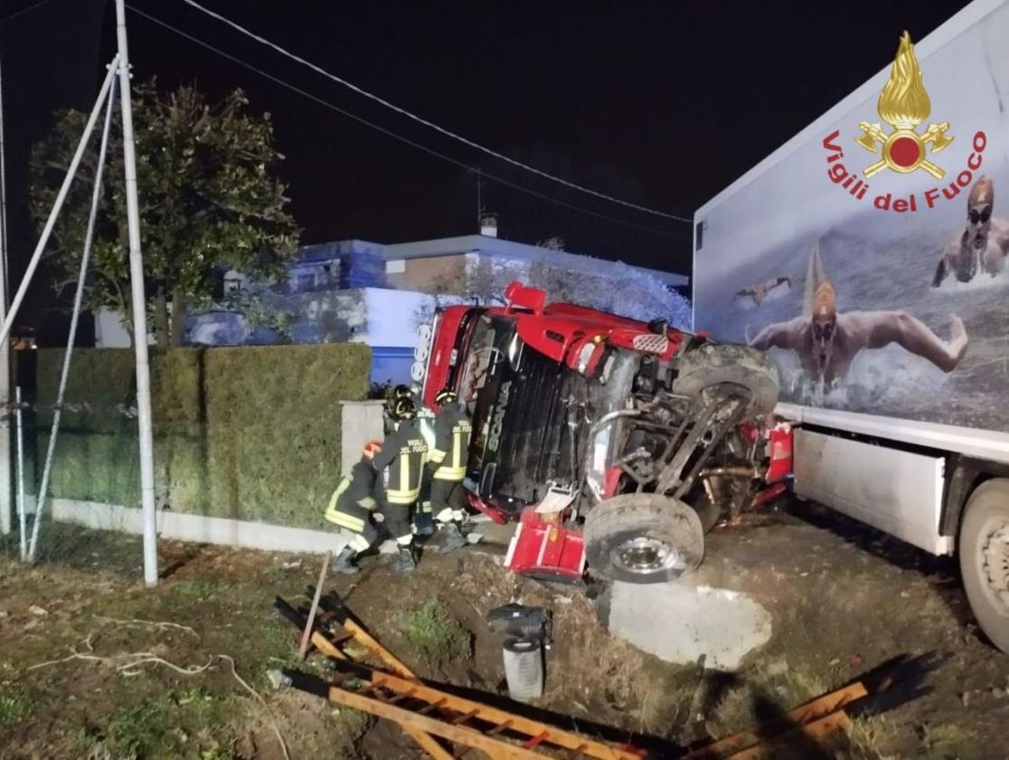 Pauroso incidente verso le 22.30 di ieri, giovedì 15 gennaio, a Lusia, in via Marasso, dove un autotreno è uscito di strada, per poi sfondare la recinzione esterna di una abitazione. Spaventosa la scena. La cabina di guida si è ribaltata e deformata, intrappolando il conducente all'interno. E' stato estratto dal personale dei vigili del fuoco, accorsi sul posto assieme al Suem 118 e dai carabinieri. L'uomo è stato quindi preso in consegna dai sanitari. Le sue condizioni, per fortuna, non fanno temere per la sua vita, secondo le prime informazioni.