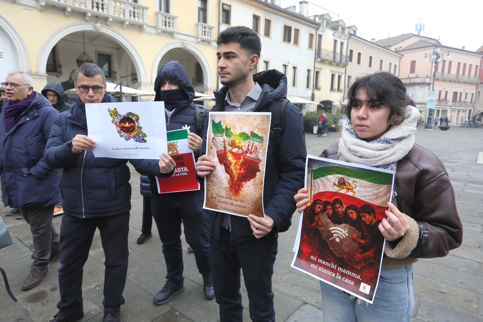 Cartelli con i volti delle vittime, slogan contro il regime degli Ayatollah e richieste di libertà scandite a gran voce. Ieri mattina in piazza Vittorio Emanuele il flash mob a sostegno del popolo iraniano, promosso dall’associazione “1001 Notte” con Vivirovigo e il Circolo di Rovigo.