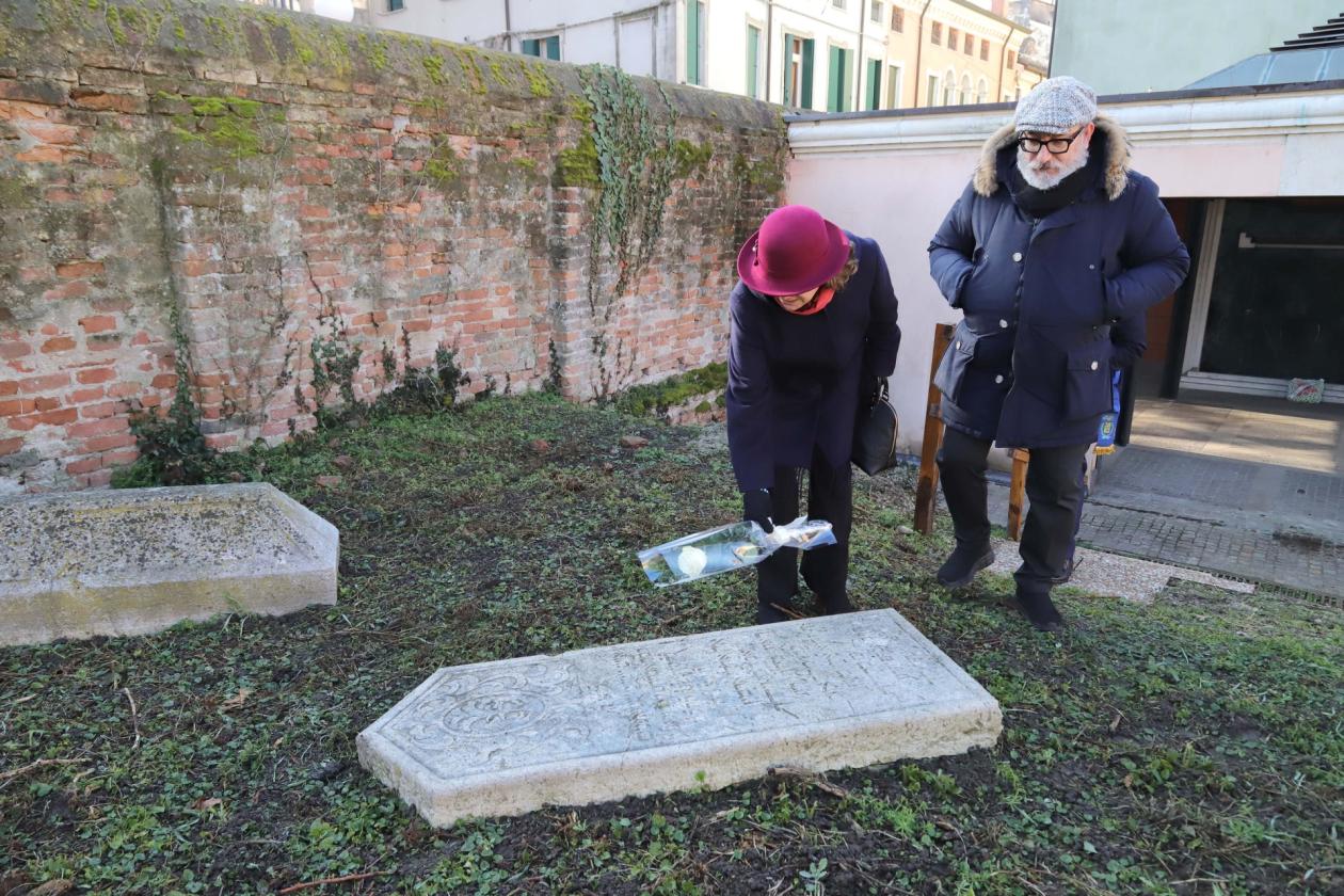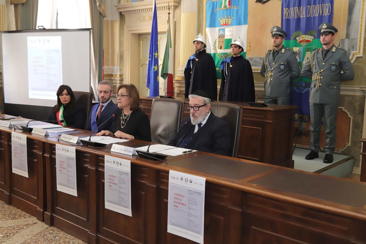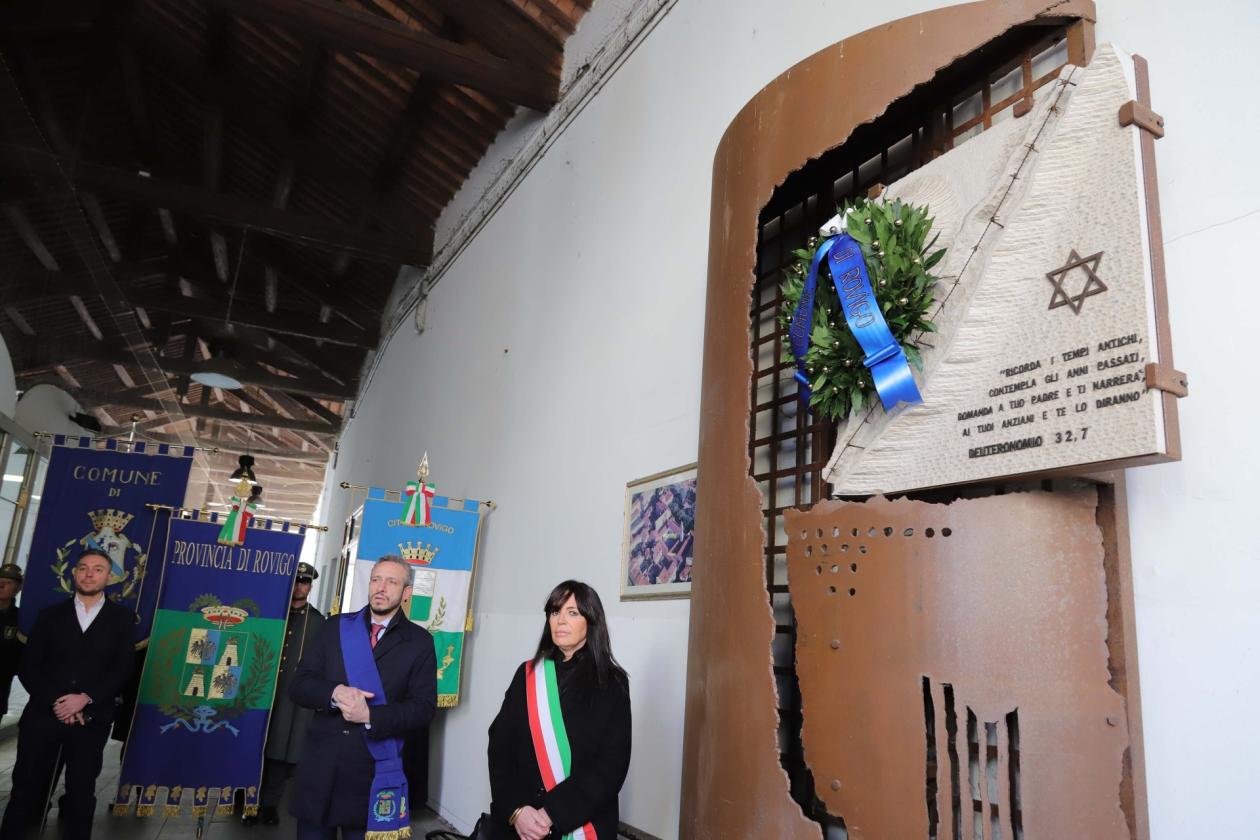 Lì sono stati citati, da parte del presidente Ferrarese, i deportati polesani internati nei campi di sterminio e il rabbino Locci ha letto un passaggio biblico. Posta una rosa bianca su una delle lapidi presenti, ci si è spostati poi in via Remigio Piva dove si trova l'unica pietra d'inciampo presente in città , quella davanti all'abitazione che fu di Luigia Modena Colorni (1881 – 1944 ). Nata a Venezia, a Padova sposò Gastone Colorni. Con lui si trasferì a Rovigo nel 1907, dove tra l'altro nacque l’unico figlio, Ausonio. A appena 51 anni morì il marito rendendola di fatto vedova; dopo l'armistizio del '43, la situazione divenne drastica il figlio lasciò al città. Ella rimase a Rovigo fino al 28 luglio 1944 quando venne arrestata, nonostante fosse, secondo le leggi, ariana per parte di madre. Portata a Trieste e poi deportata ad Auschwitz, non fece più ritorno. Conclusione, infine, all'ingresso di piazza annonaria, in via X luglio, per la corona d'alloro alla lapide che ricorda la tragedia dello sterminio. “Con questo momento vogliamo specialmente parlare alle nuove generazioni, – ha poi concluso nei saluti il sindaco Cittadin – la memoria di quello che è accaduto deve guidarci nelle sfide del presente”.
