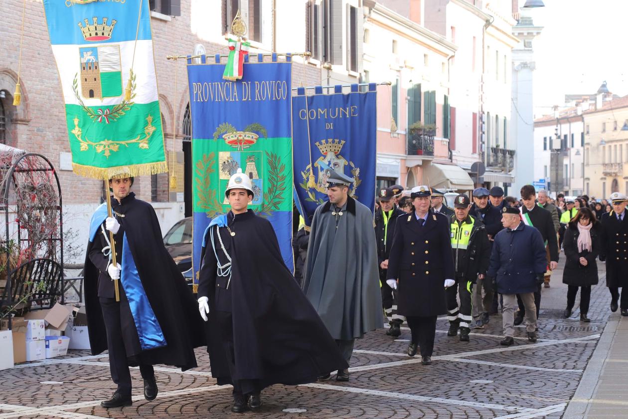 In un corteo, anticipato dai gonfaloni del comune di Rovigo, di Occhiobello e della Provincia, i presenti, gli studenti delle classi del Celio Roccati coinvolte, le associazioni d'arma e gli amministratori di alcuni comuni del territorio, hanno continuato la commemorazione lungo le vie del centro per raggiungere l'antico cimitero ebraico dietro il tempio della Rotonda.