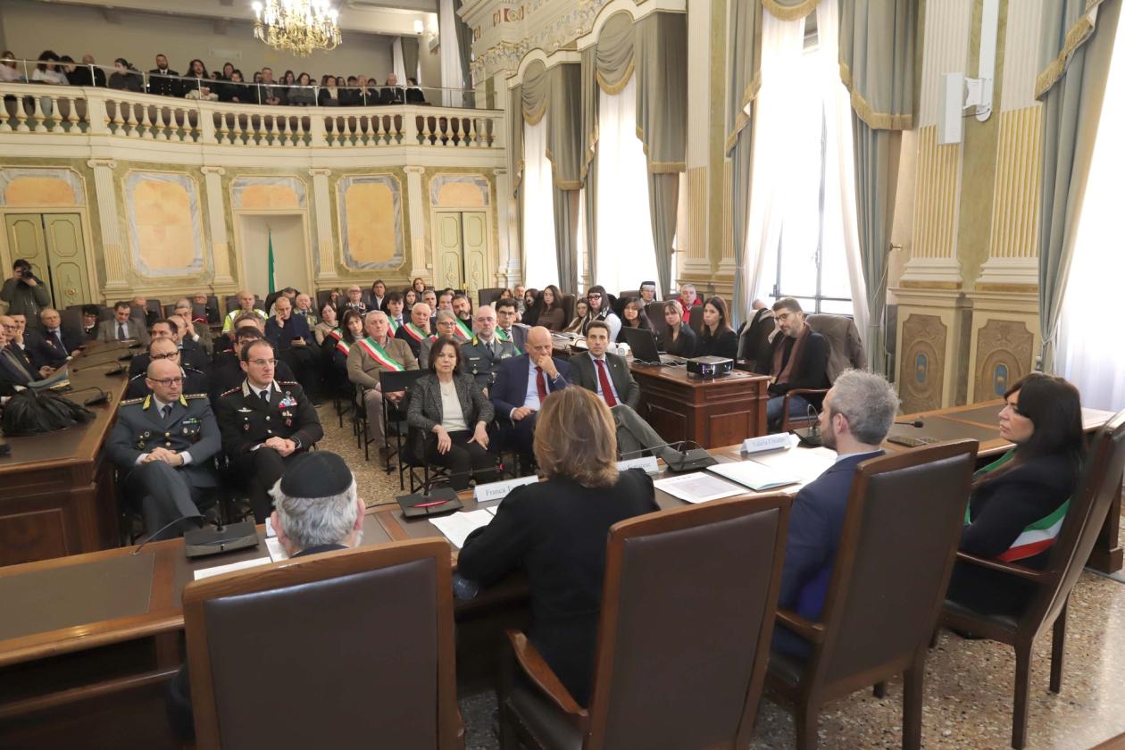 “A voltare lo sguardo a ciò che stava accadendo, tanti e tante. Tutti abbiamo la responsabilità di non permettere che l'indifferenza prevalga davanti alla memoria, ma neppure nei confronti delle tante discriminazioni che vediamo giornalmente. Ormai sono trascorsi 26 anni da quel 2000 che vide istituita la Giornata della memoria, ma sembra che abbiamo la memoria veramente molto corta: non ce ne ricordiamo e viviamo un quotidiano che ancora manifesta, nei nostri comportamenti, rigurgiti antisemiti, rigurgiti di razzismo, rigurgiti di poco rispetto nei confronti dell'altro, della persona come individuo, con le sue particolarità, pregi e difetti. Ci comportiamo come se nulla fosse accaduto”. Mi auguro, ha continuato Tancredi: “Che questa riflessione continui ad essere fatta nei confronti delle giovani generazioni, ma non soltanto nelle scuole, anche nelle famiglie, nei comportamenti che noi istituzioni siamo tenute ad avere conformandoci ai principi della Costituzione, valori che devono essere il nostro faro”. Non uno slogan, ha ribadito il sindaco Valeria Cittadin, dopo gli onori di casa svolti dal presidente della provincia , Enrico Ferrarese: “Con questa giornata impariamo e capiamo l'importanza della libertà, conquista che diamo spesso per scontata. Dobbiamo essere tutti ‘sentinelle’ che avvertono eventuali segnali di sopruso ”.