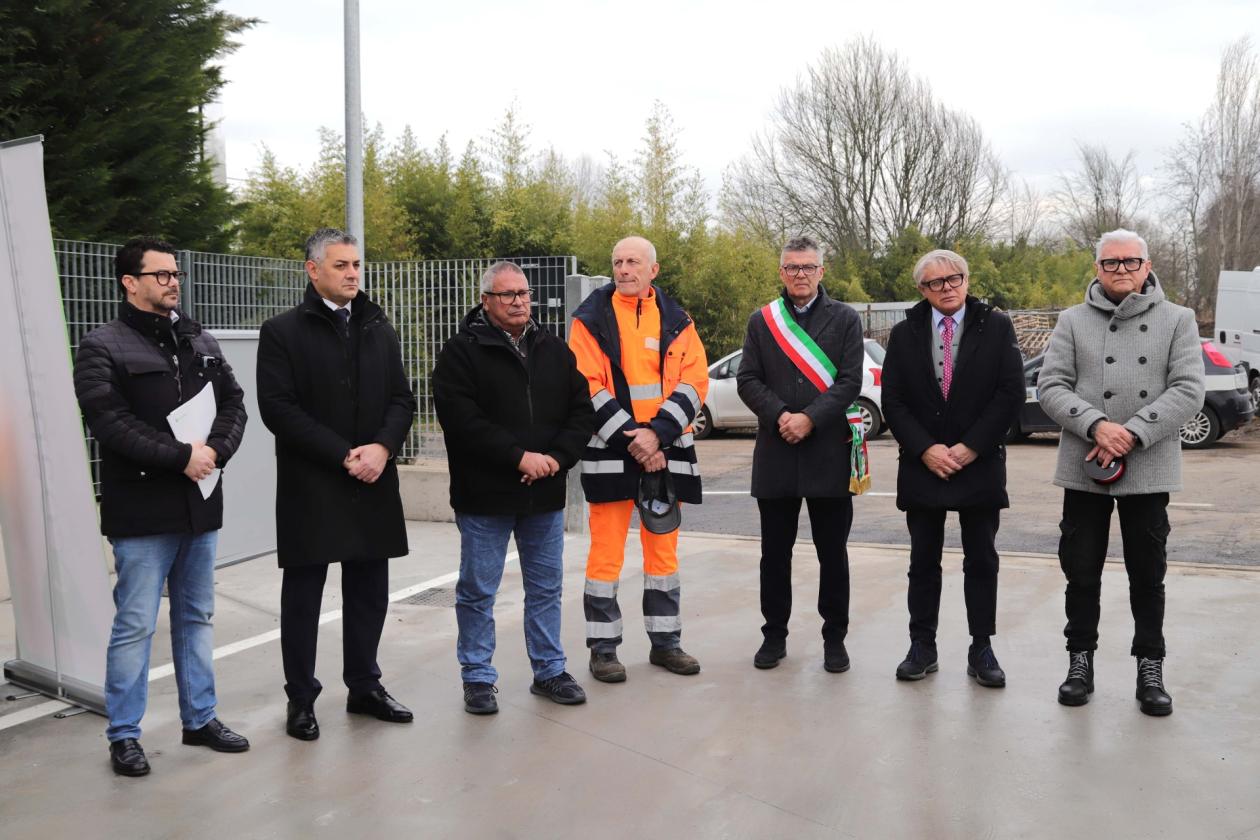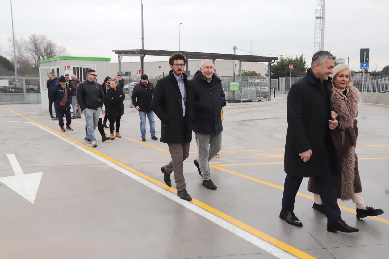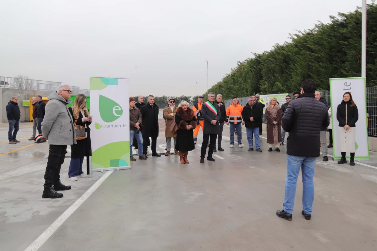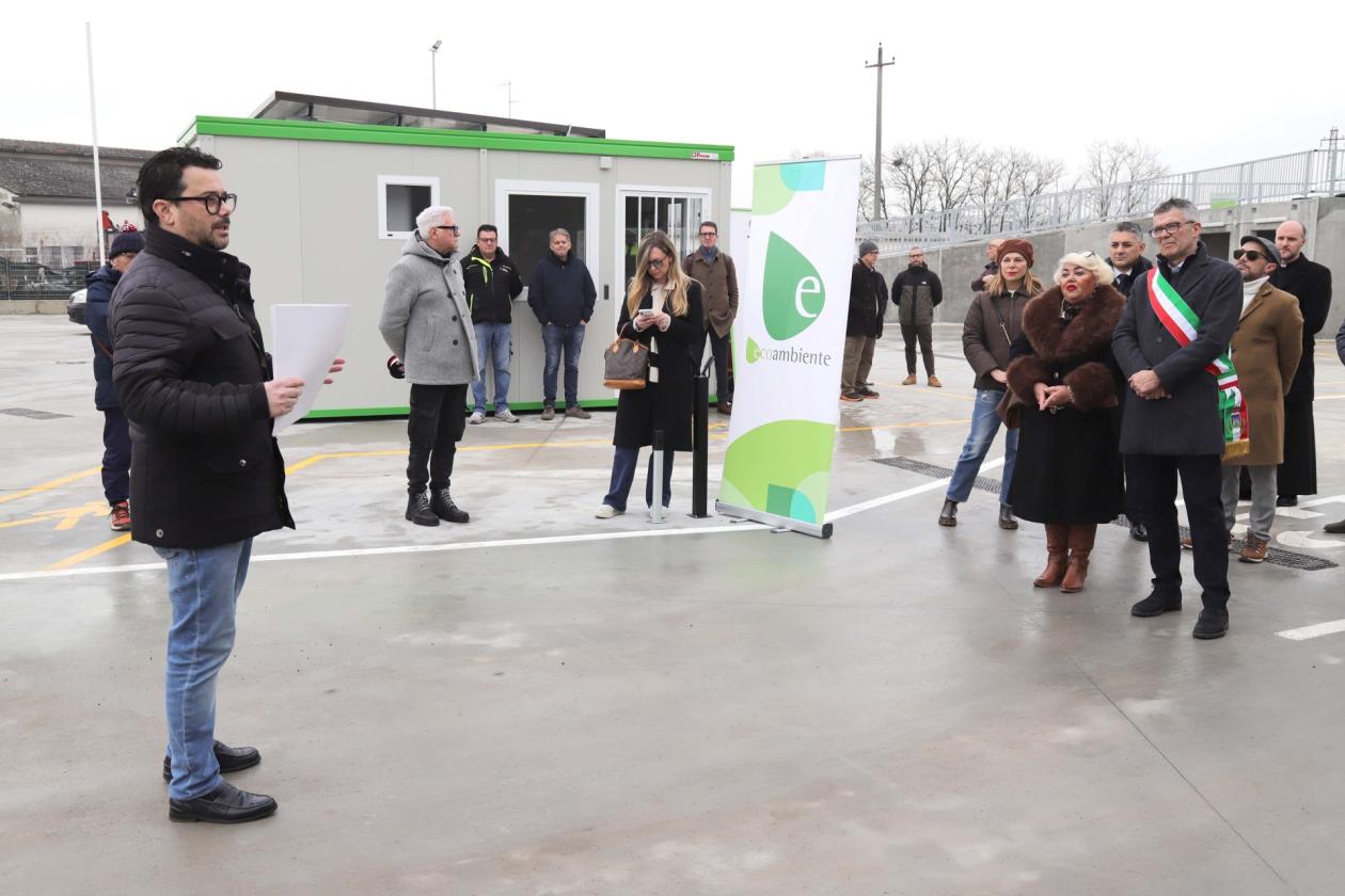 Il taglio del nastro è stato affidato alla consigliera Emanuela Beltrame. L’intervento, finanziato con fondi del PNRR attraverso il Consiglio di Bacino, ha comportato un investimento complessivo di circa 650mila euro e ha interessato una riqualificazione completa dell’area. I lavori hanno riguardato la nuova pavimentazione, la realizzazione della pedana sopraelevata che consente il conferimento dei rifiuti dall’alto nei cassoni, la costruzione di una tettoia metallica e la riorganizzazione degli spazi di deposito. Sono stati inoltre adeguati gli impianti idrici, fognari, antincendio ed elettrici, insieme all’illuminazione, e sono stati installati sistemi di videosorveglianza, controllo accessi e un impianto fotovoltaico per migliorare sicurezza ed efficienza energetica. Il cantiere si è protratto per circa sette mesi.