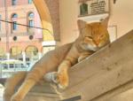 Ieri intanto è continuato un piccolo, e per certi versi surreale, pellegrinaggio di cittadini verso l’incrocio dove il felino dal pelo rosso è stato investito. E appoggiati alla vetrata della farmacia dove era era stata appiccicata una foto di Rossini si sono moltiplicati fiori, cuori di varia forma, peluche. Un altarino che dimostra quanto Rossini fosse entrato nei cuori della gente. E poi ricordi e foto nelle vetrine del centro (ci manca solo un santino. Ma potrebbe arrivare presto).