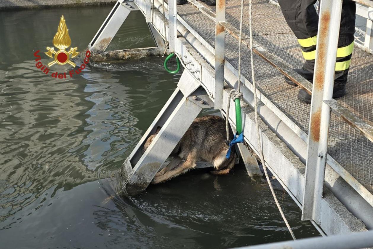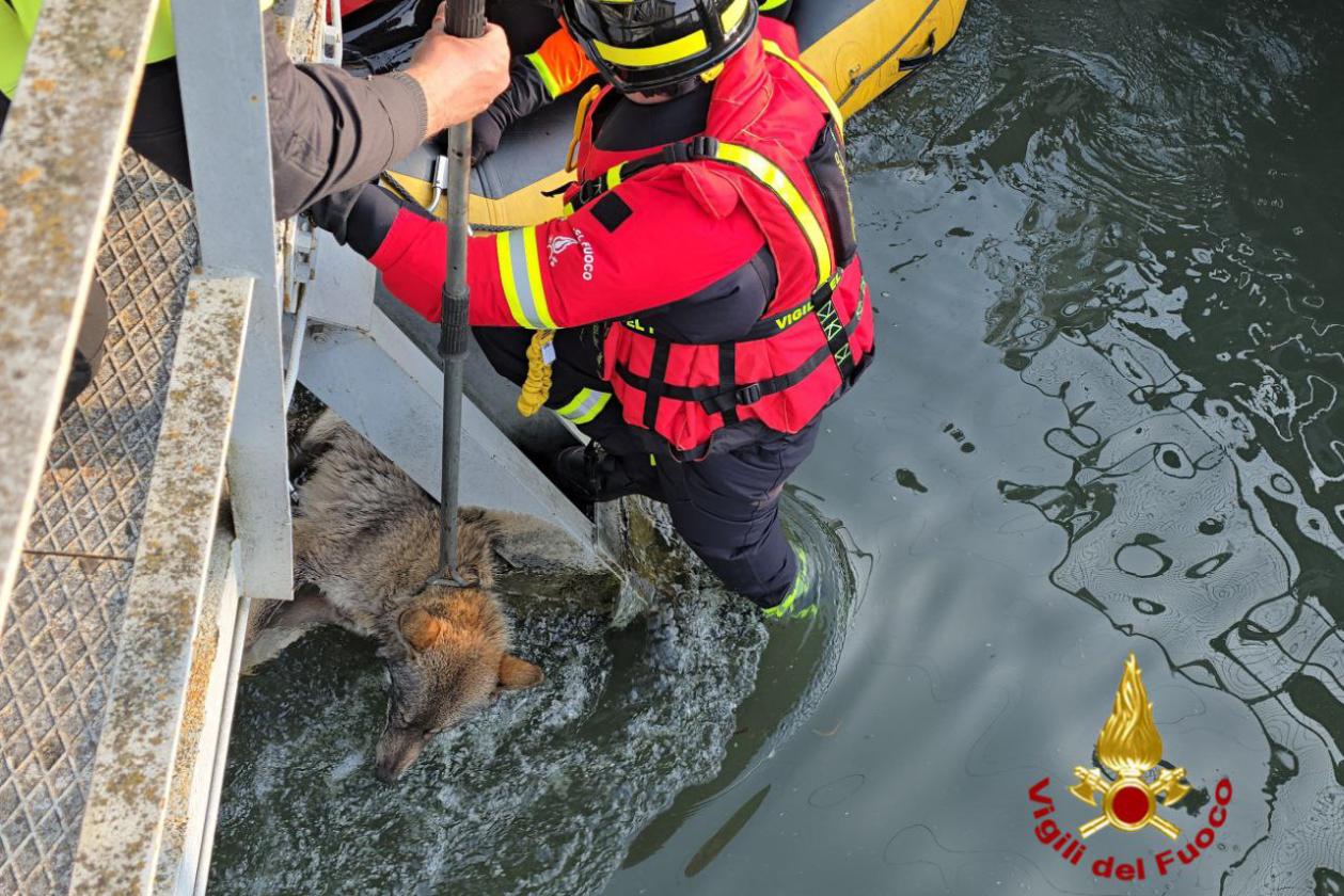 I Vigili del fuoco di Verona sono stati impegnati nel soccorso a una femmina di lupo nel canale artificiale Giuliari, in via Garofoli nel Comune di San Giovanni Lupatoto (Verona).