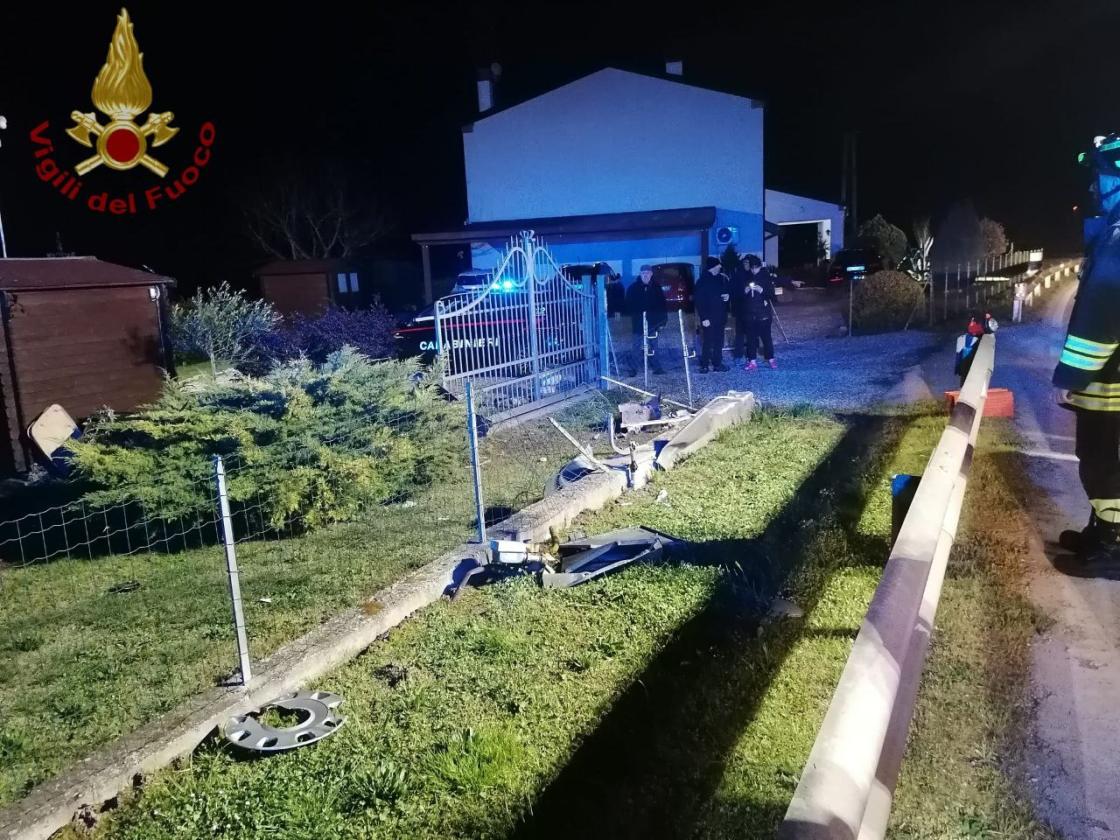 Nell' impatto l’auto ha sfondato la recinzione della casa e divelto il contatore del gas. I Vigili del Fuoco del comando di Rovigo sono intervenuti provvedendo alla messa in sicurezza dell’area e dell’impianto del gas.