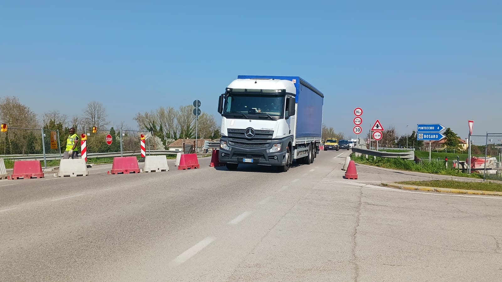 Si è acceso questa mattina, lunedì 16 marzo, poco dopo le 9.30 il semaforo sulla Statale 16 a Bosaro: per i prossimi 18 mesi regolerà il passaggio a senso unico alternato durante i lavori di demolizione e ricostruzione del ponte sul Canalbianco.
