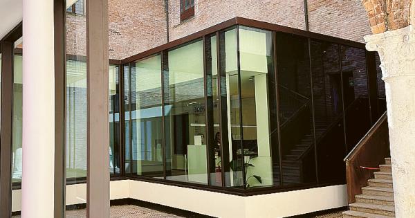 Nuovo look per il Roverella. Quel che rimane della corte interna quattrocentesca, tra le arcate estensi in laterizio, ora rivive di un respiro nuovo: quello offerto dalla ri-progettata entrata e biglietteria di accesso sia alla sede espositiva delle mostre temporanee che degli uffici e del primo piano che ospita una parte delle collezioni della pinacoteca dei Concordi e del Seminario Vescovile.