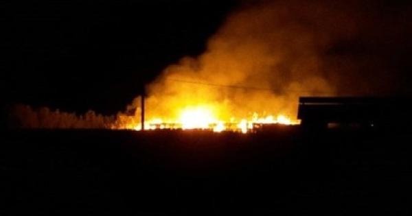 Le fiamme nella notte nell'azienda agricola Forestan di Frassinelle Polesine