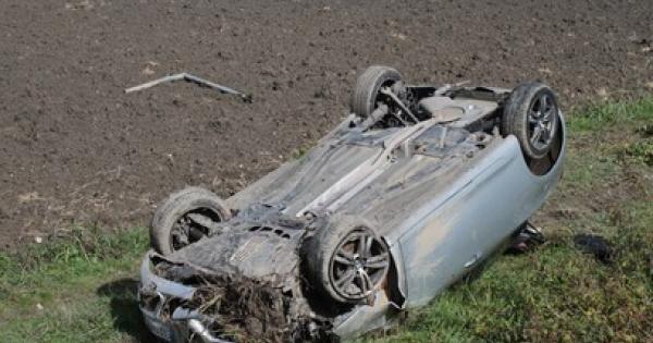 L'auto che si è ribaltata in Transpolesana