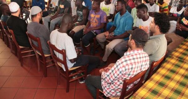 Un gruppo di profughi all'ostello Canalbianco di Arquà Polesine (foto d'archivio)