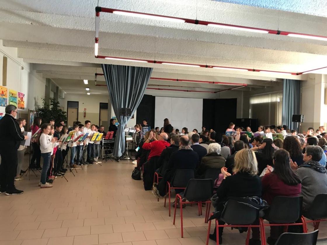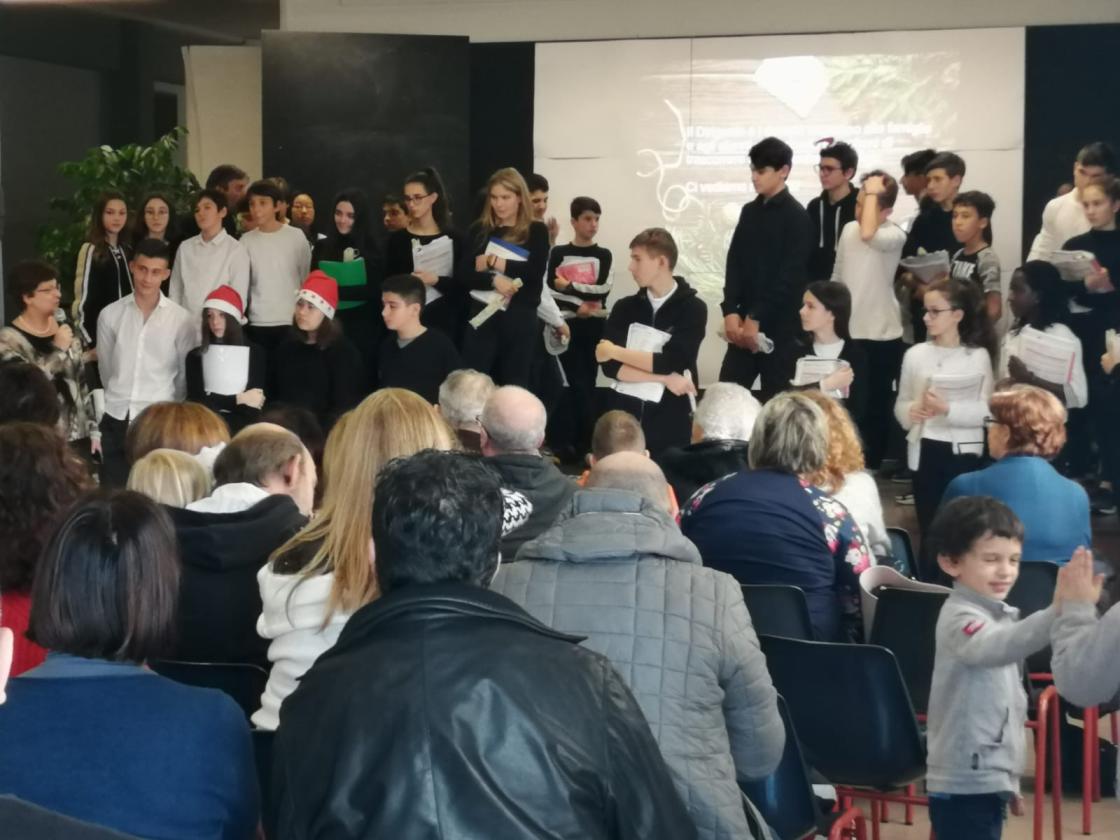 Il 14 Dicembre al mattino ha avuto la sua conclusione il Progetto “Includiamoci con la Musica”, un periodo di due mesi e mezzo in cui le docenti Angela Rosito e Giancarla Gusella, in continuità con le classi quinte della scuola primaria “Duca D’Aosta” e la classe II B della scuola secondaria di primo grado “A. Riccoboni”, hanno insegnato alcuni canti e brani natalizi che i ragazzi hanno suonato con il flauto dolce. Da “Imagine” di John Lennon a brani della tradizione natalizia per finire con lo scoppiettante “Jingle Bells”, l’atmosfera natalizia si è pienamente raggiunta anche con la lettura di brevi testi di riflessione sui temi della pace, del rispetto dell’ambiente e dell’accoglienza, preparati dai ragazzi.