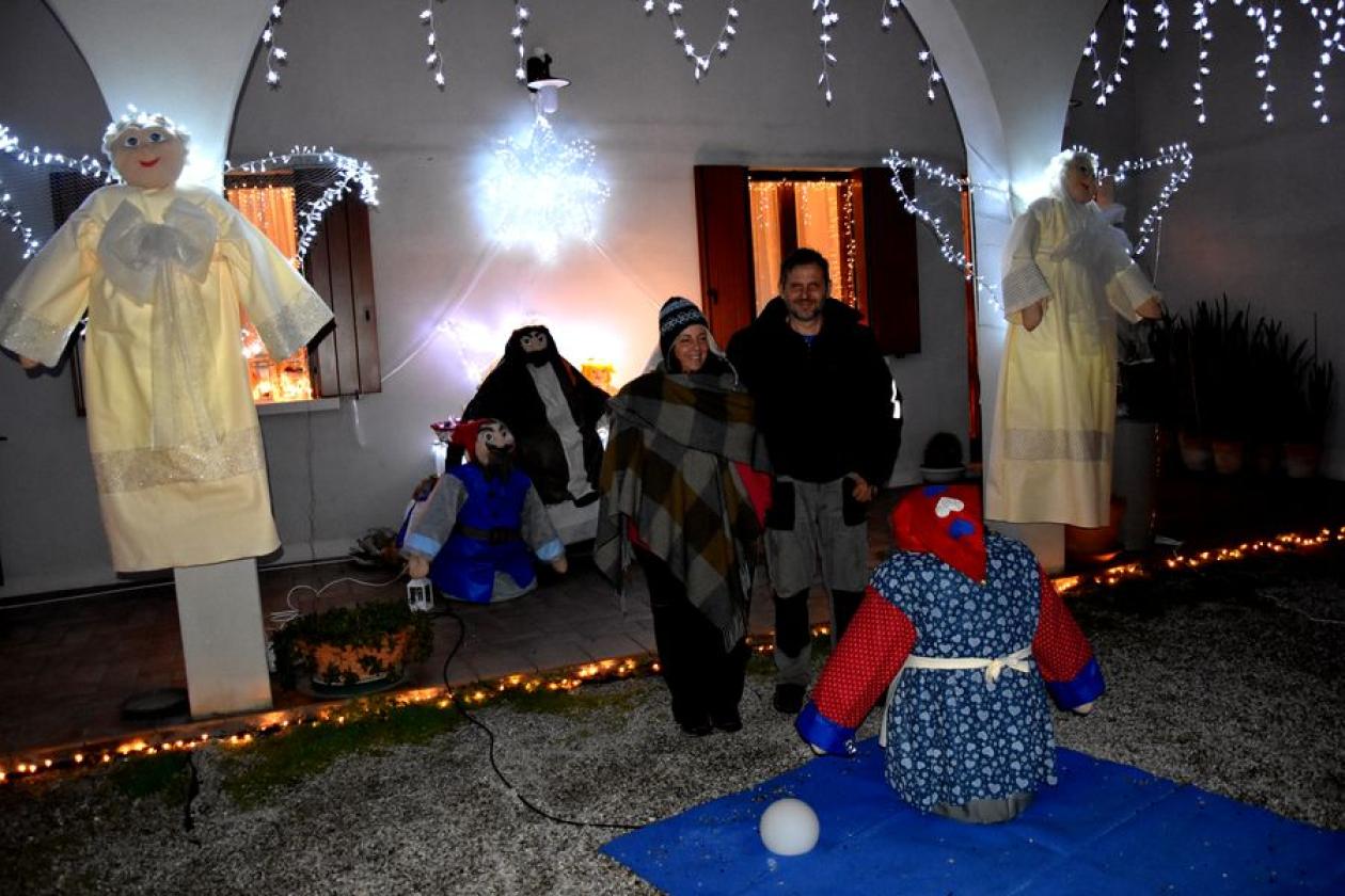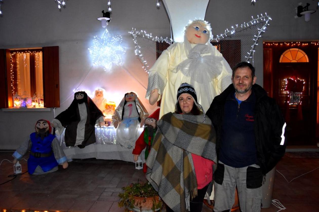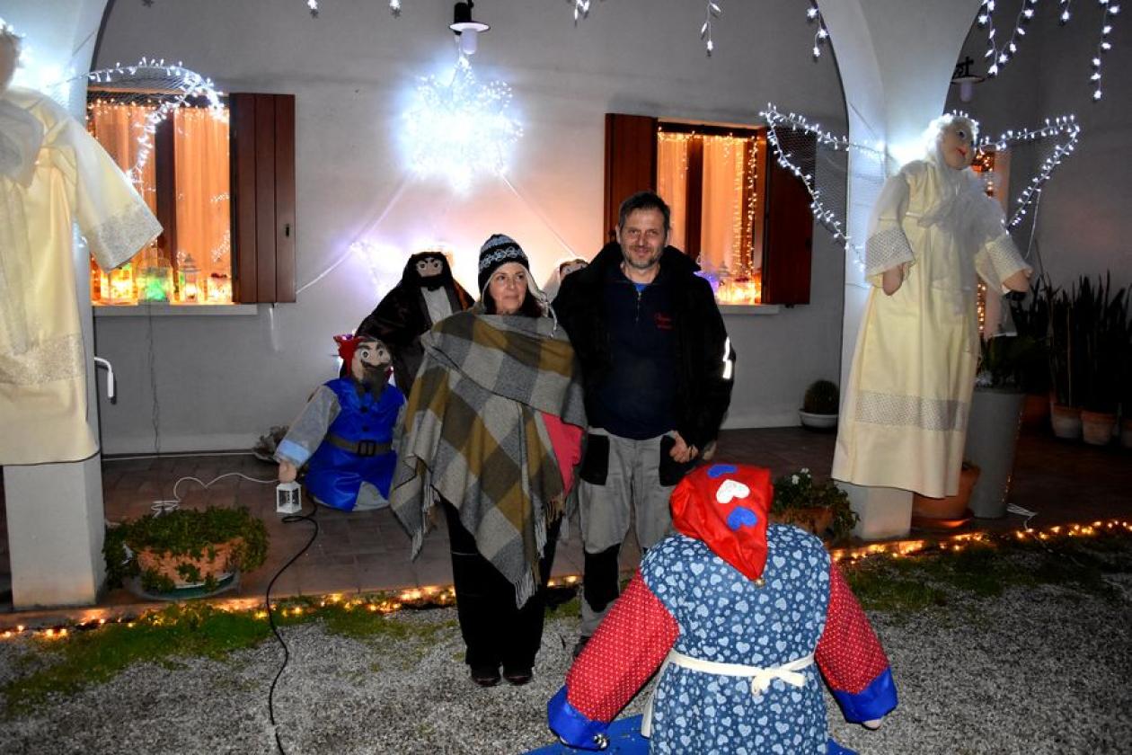 Sotto il portico della villetta c’è il presepe, creato con materiali particolari. “L’idea è nata dalla mia passione di fare i presepi – racconta - Infatti, l’anno scorso, li ho realizzati nella scuola Stella di Taglio di Po e nella chiesa di San Basilio. E proprio l’anno scorso ho messo le luminarie nel mio giardino. Il 7 gennaio, quando le ho levate, ho pensato che per questo Natale volevo realizzare la natività. Per cui in quei giorni di gennaio ho iniziato a creare le teste degli angeli. Poi ho sospeso il lavoro e l’ho ripreso tre mesi fa. Ho quindi terminato gli angeli che sono alti fino a due metri”