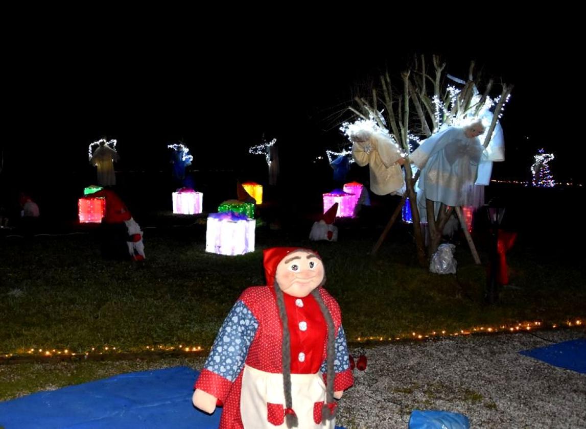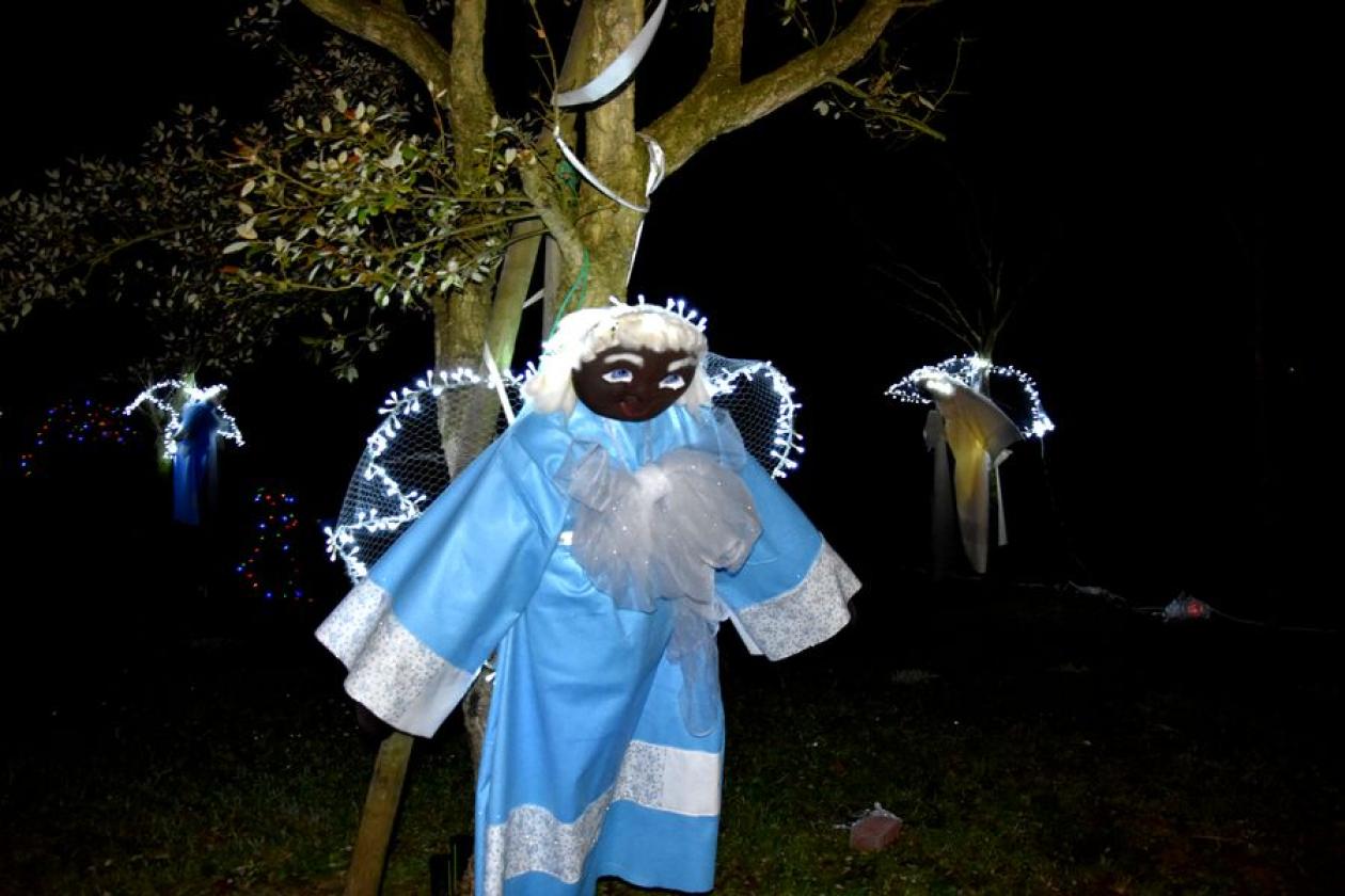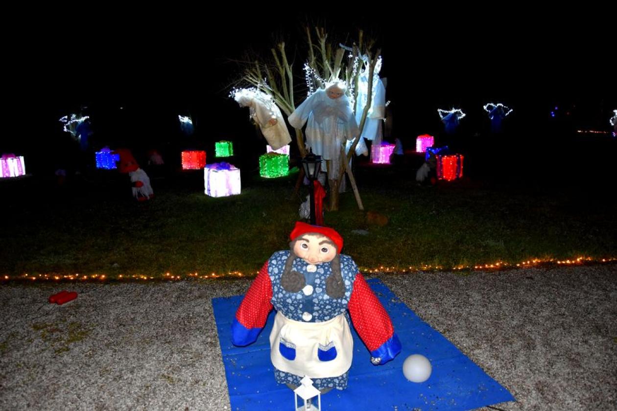 “Sono dei pali ricoperti di fili – racconta Alice - Di notte, quando sono illuminati, l’effetto è di vedere degli alberi di Natale. Nel mezzo del giardino ho creato tanti pacchetti regalo e 21 angeli che circondano il tutto. Sono loro che annunciano la natività, la nascita di Gesù”.
