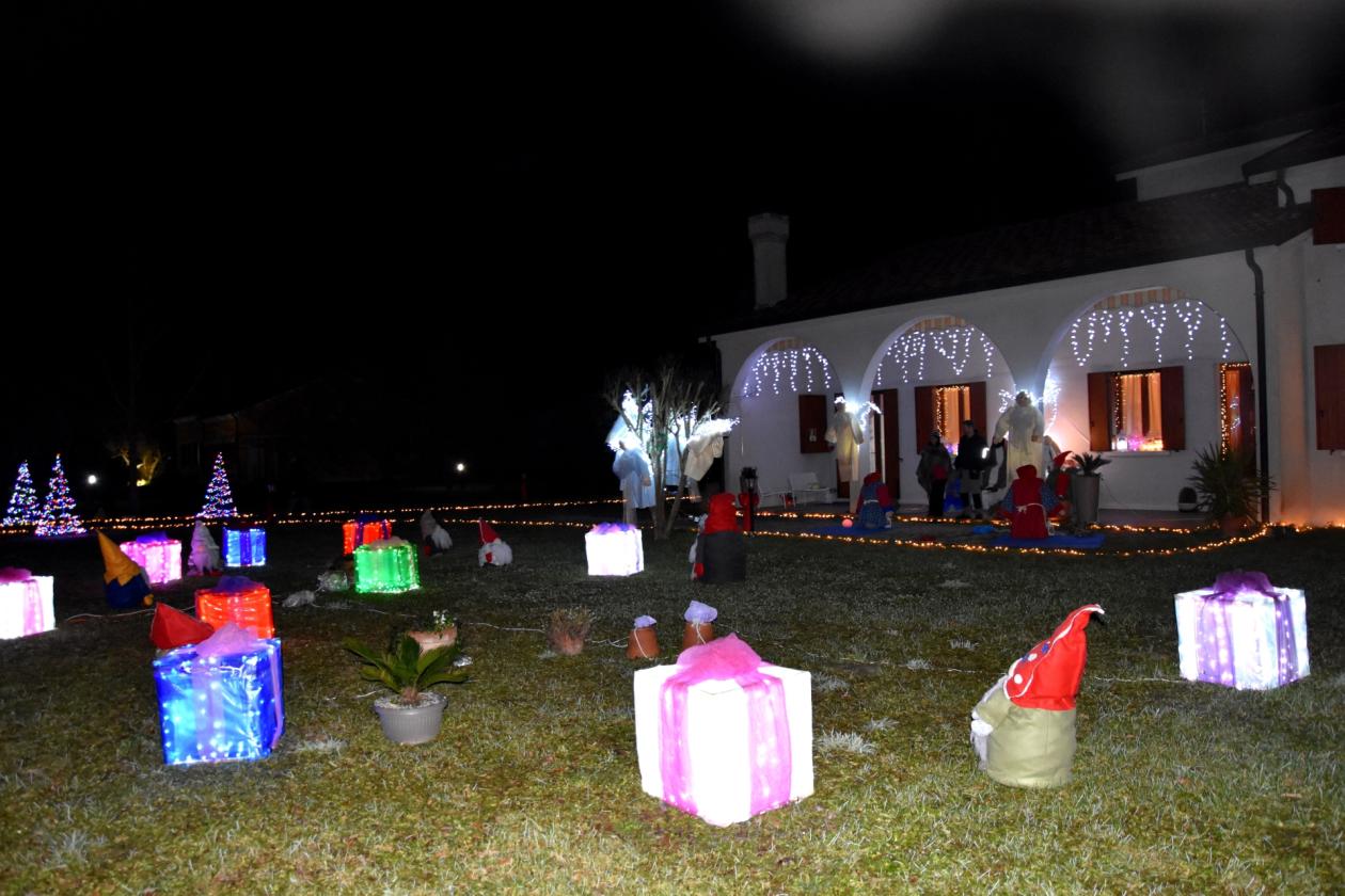 TAGLIO DI PO - Un angolo di Taglio di Po in questi giorni è trasformato in una favola. Il giardino dell’abitazione di Tiziano Baratella e di Alice Sarto, di sera, è illuminato da tante luci che rappresentano la natività. Chi passa lungo via del Giubileo, nota tante luci colorate proprio davanti alla villetta. Attaccato al cancello un messaggio importante: “Team for children onlus”.