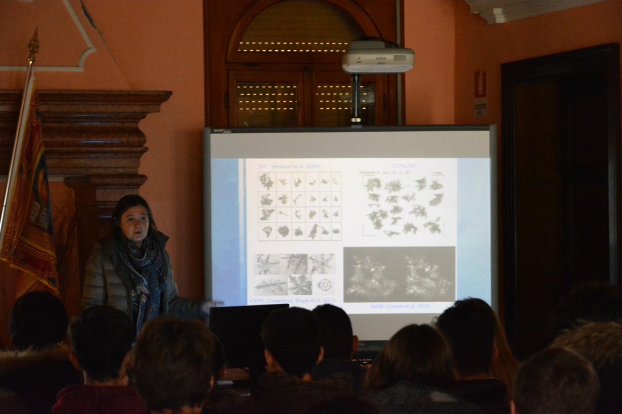 “Let it snow”, questo è stato il titolo dell’incontro dedicato alla stima delle precipitazioni nevose tramite l’uso di satelliti. Lisa Milani, infatti, si è unita due anni fa al team di ricerca che ha lanciato il programma GPM, acronimo di Global Precipitation Measurement. I ricercatori della Nasa, avvalendosi di algoritmi e osservazioni dal satellite, monitorano le precipitazioni, fondamentali riserva di acqua dolce per il pianeta. “A terra non abbiamo sufficienti strumenti di misura” ha spiegato Lisa Milani, precisando che “radar e pluviometri non sono ovunque”. Lo studio dei fenomeni atmosferici si avvale perciò di satelliti meteorologici, che possono essere di tipo polare o geostazionario. Calibrando tutti i satelliti è possibile ottenere un’immagine completa di ciò che avviene a livello della troposfera, captare le onde elettromagnetiche e ottenere immagini tridimensionali della struttura e dell’intensità delle precipitazioni. Lisa, nello specifico, ha focalizzato la propria attenzione su un tipo particolare di neve, nota come “lake effect snow”, la precipitazione convettiva che interessa la zona statunitense dei Grandi Laghi, territorio in cui l’aria fredda che scende dai poli si scontra con l’umidità più calda dei bacini lacustri.