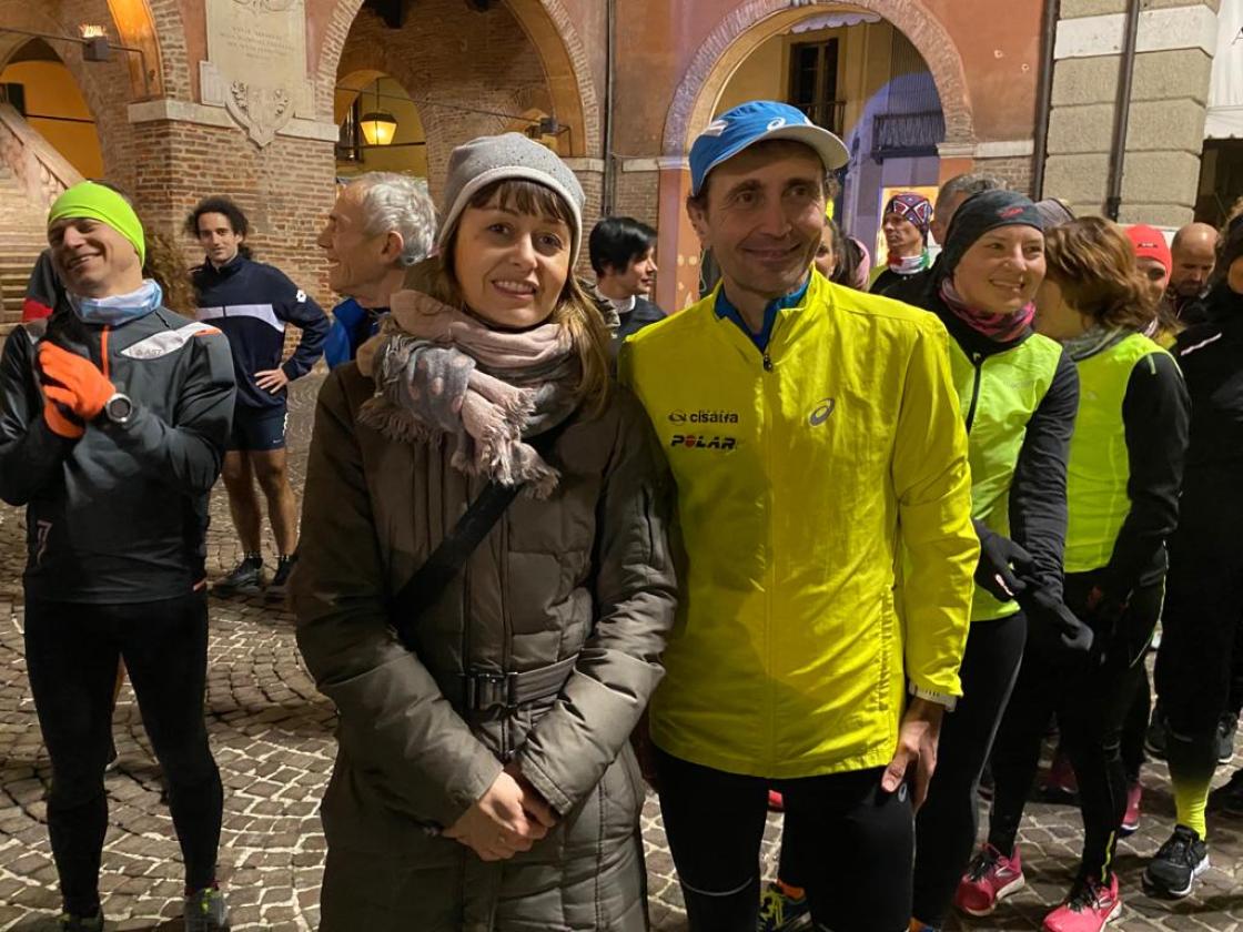 ROVIGO - Di corsa tra monumenti, piazze e quartieri del capoluogo polesano per circa 8 km. Il campione iridato, Giorgio Calcalterra, ultramaratoneta, (48 anni il prossimo 11 febbraio), è arrivato in città nel tardo pomeriggio di mercoledì 29 gennaio per allenarsi con i podisti rodigini. Per il tre volte campione del mondo nella 100 km di Ultramaratona, è stata la prima volta a Rovigo in scarpe da running per un allenamento lungo i percorsi urbani assieme agli appassionati rodigini della corsa. A coordinare lo speciale evento Luca Favaro il coach dell’associazione Run It iscritta a Uisp Rovigo. Run It, come anteprima speciale della corsa “Rovigo in Love 2020” in scena tra le vie cittadine il prossimo 9 febbraio, ha fatto questo regalo a tutti gli appassionati del podismo.