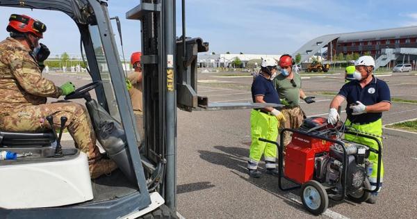 SCHIAVONIA - Gli alpini della protezione civile del Veneto e gli specialisti del 3° Stormo dell’Aeronautica stanno allestendo l'ospedale da campo donato dal Qatar. La struttura sarà installata in prossimità dell’ospedale della cittadina di Schiavonìa.