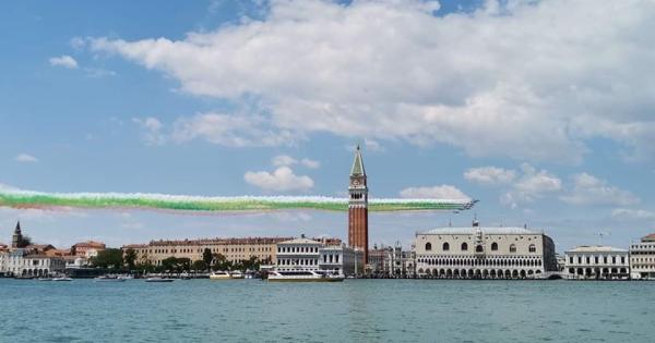 VENEZIA - Le Frecce Tricolori oggi, poco dopo le 14, hanno sorvolato il cielo di Venezia. Il fumo verde-bianco-rosso ha invaso l'azzurro sopra il Bacino di San Marco, la Piazza e la Basilica. Una manifestazione legata alla Festa della Repubblica che sta coinvolgendo i capoluoghi di tutte le regioni italiane. E oggi è toccato prima a Venezia e poi Trieste. Come sempre uno spettacolo suggestivo e ricco di magia. Le frecce sono passate anche sopra i cieli del Polesine all'ora di pranzo in direzione, appunto, Venezia.