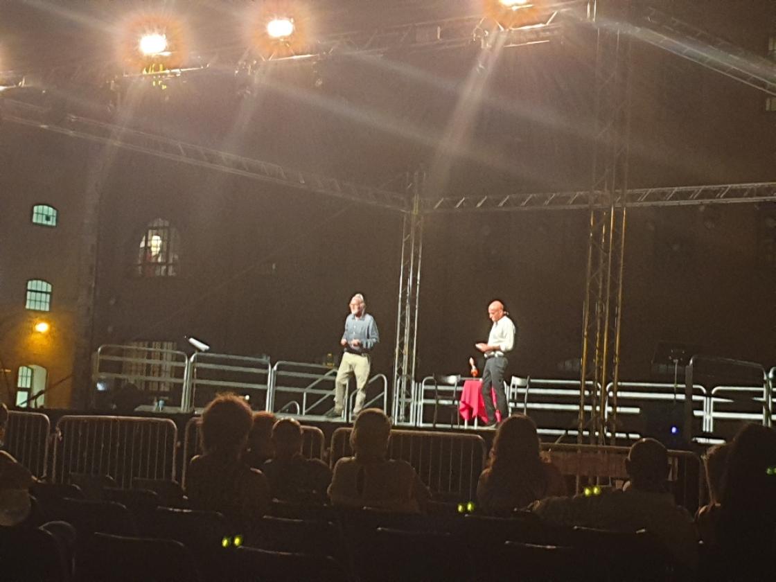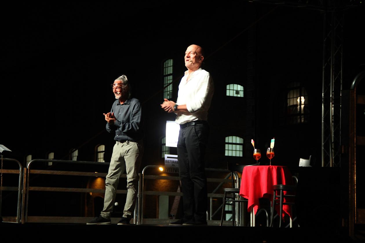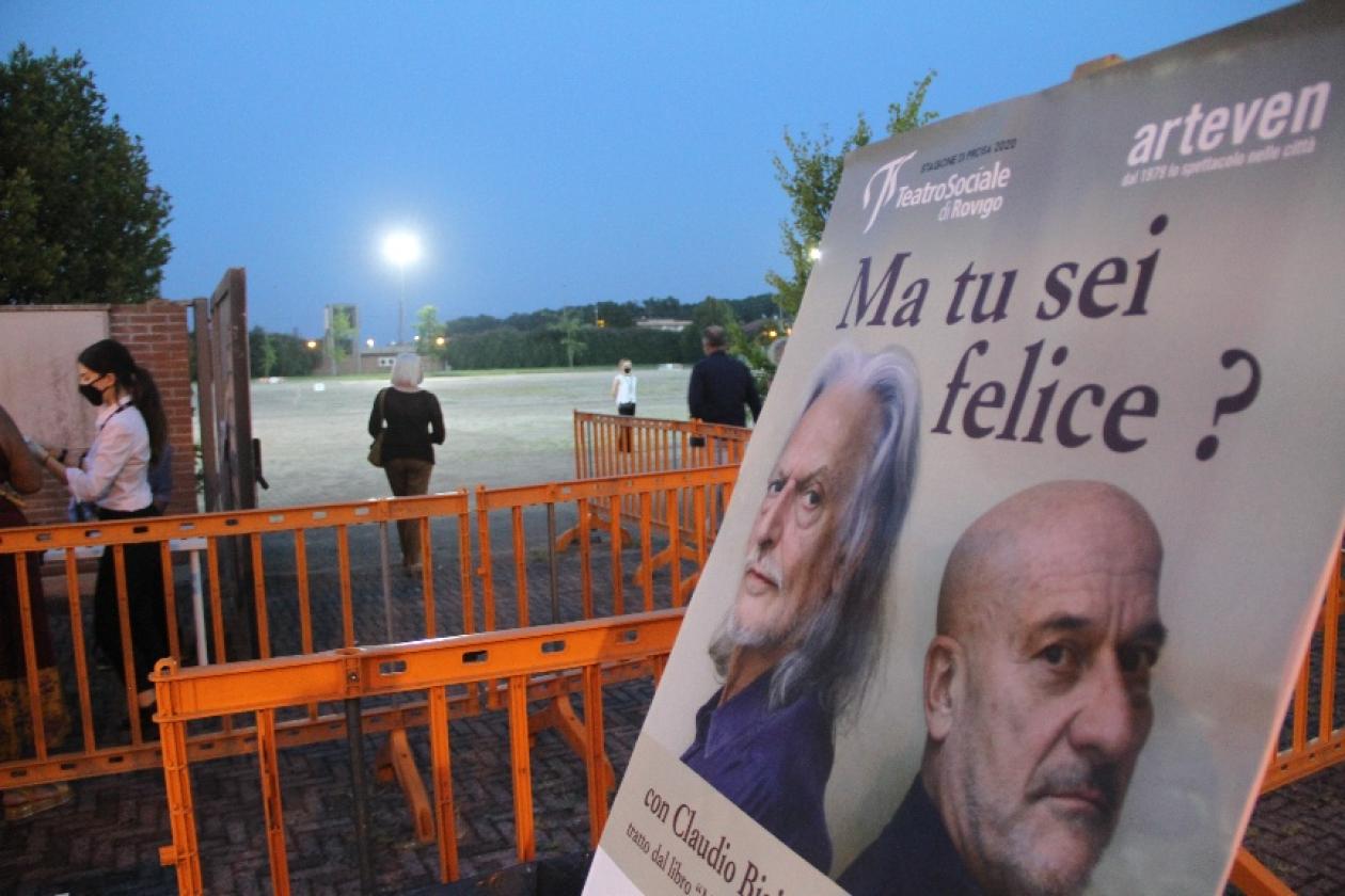 ROVIGO - La coppia Bisio-Alberti ha fatto il tutto esaurito allo spazio eventi del Censer di Rovigo. La stagione di Prosa del Teatro Sociale, adattata per l'emergenza sanitaria, si è chiusa alla grande e con grande divertimento. I due famosi attori hanno portato in scena “Ma tu sei felice” (recupero de “I fratelli Karamazov"), uno spettacolo esilarante, connubio tra dialogo teatrale e cabaret, dove filo conduttore sono stati la maestria, la professionalità, l'ironia e la complicità dei due protagonisti, che non hanno mancato di coinvolgere pubblico e amministratori in simpaticissime gag.