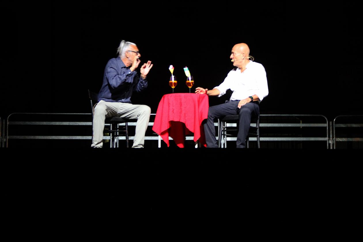 Circa due ore di spettacolo, dove i due attori, interpretando Saverio e Vincenzo descrivono storie, personaggi e varie sfaccettature umane, entrando e uscendo dai loro ruoli, sempre con grande simpatia e coinvolgimento. I circa 600 spettatori, che hanno occupato praticamente tutti i posti disponibili, hanno premiato la famosa coppia con tantissimi applausi.
