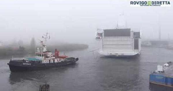 PORTO VIRO - Oltre 200 metri di lunghezza, più di 260 auto di capienza, mille persone a bordo e 156 cabine passeggeri. Sono solo alcuni dei numeri di Gnv Bridge, il traghetto commissionato da Grandi navi veloci al Cantiere Navale Visentini che è stato varato domenica 28 marzo, dal Po di Levante. A causa del fondale troppo basso del canale di immissione in Adriatico, però, il Gnv Bridge si è incagliato. Sono intervenuti due rimorchiatori da Venezia per cercare di liberarlo, sotto il controllo delle motovedette della Capitaneria di Porto di Chioggia. Il traghetto è rimasto bloccato fino al lunedì successivo.