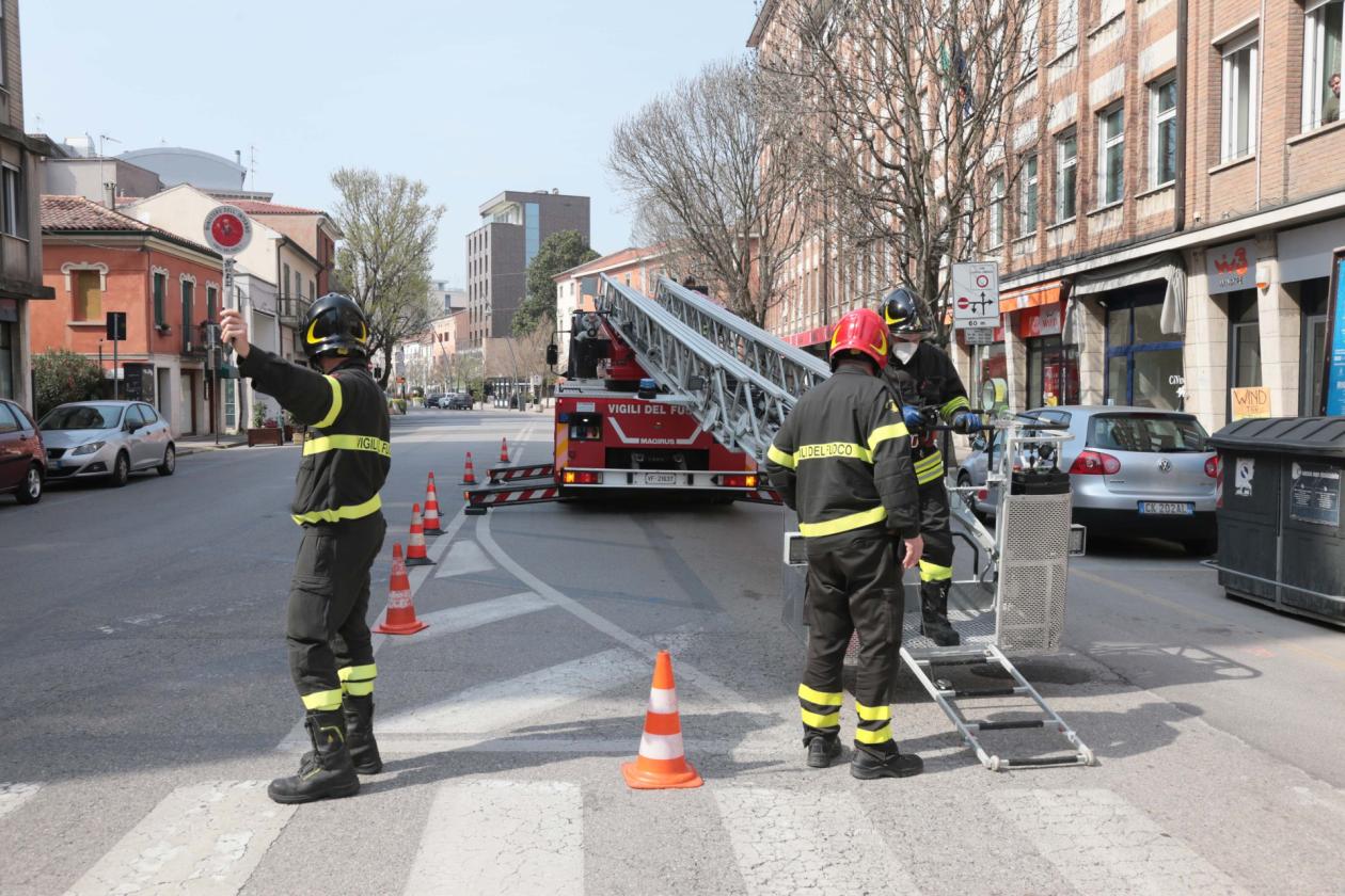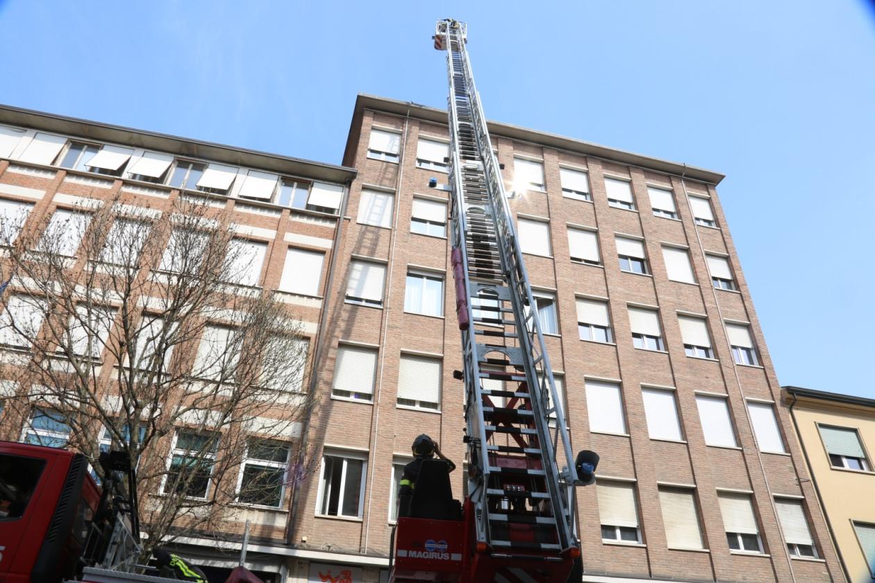 ROVIGO - Ancora una volta, i vigili del fuoco di Rovigo sono dovuti intervenire in pieno centro per una caduta di calcinacci da un palazzo. Una tipologia di intervento che si ripete con una certa frequenza. Fortunatamente, anche in questa occasione non ci sono state conseguenze per le persone. Alla segnalazione, subito inviata, i pompieri hanno reagito intervenendo in forze: tre mezzi, compresa la necessaria autoscala, per raggiungere il tetto del grande condominio posto di fronte al ristorante Da Dante, subito prima dell'intersezione con via Ponte Roda, che conduce in piazza Roma.