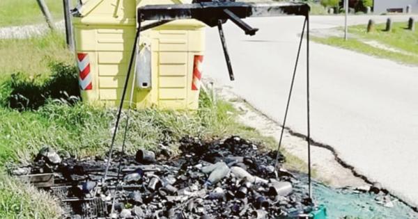 “Anche stamattina, dopo aver tirato su dal ciglio due bottiglie e una lattina, mi dirigo verso i bidoni della differenziata in fondo a via Marconi per gettarle ma stanotte, dopo il coprifuoco, qualcuno ha fatto questo gesto”: sono le parole di un cavarzerano che ieri mattina si è accorto che nell’isola ecologica che si trova alla fine di via Marconi, all’incrocio con via Bellina, il raccoglitore della raccolta differenziata di vetro e lattine è stato completamente carbonizzato.