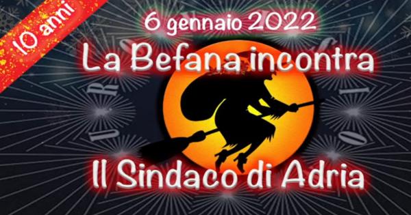 ADRIA - La Befana incontra il sindaco Omar Barbierato. Edizione della Befana di Adria per forza di cose riveduta e corretta, alla luce del numero impressionante di contagi che si registrano in questo periodo, ma, perlomeno in “modalità streaming”, è stato rispettato il rito della “pettinata” che la Befana riserva al sindaco.