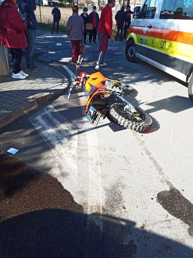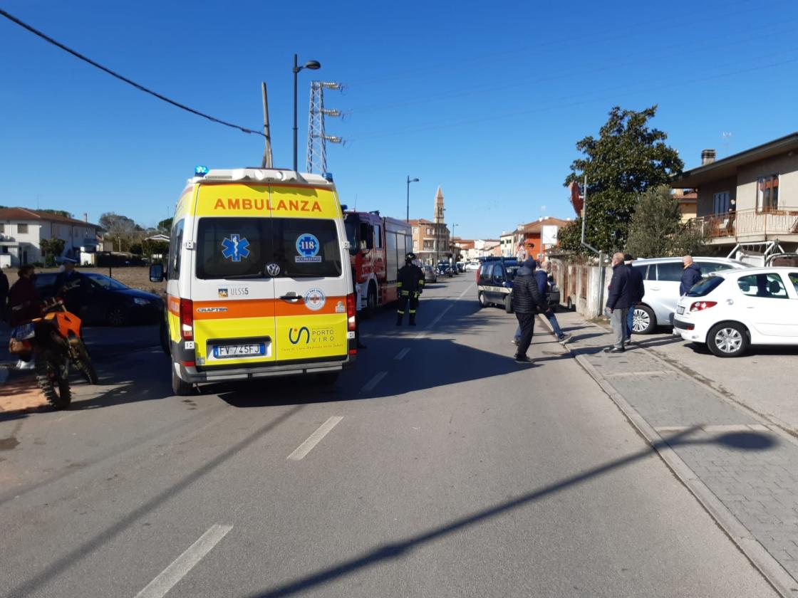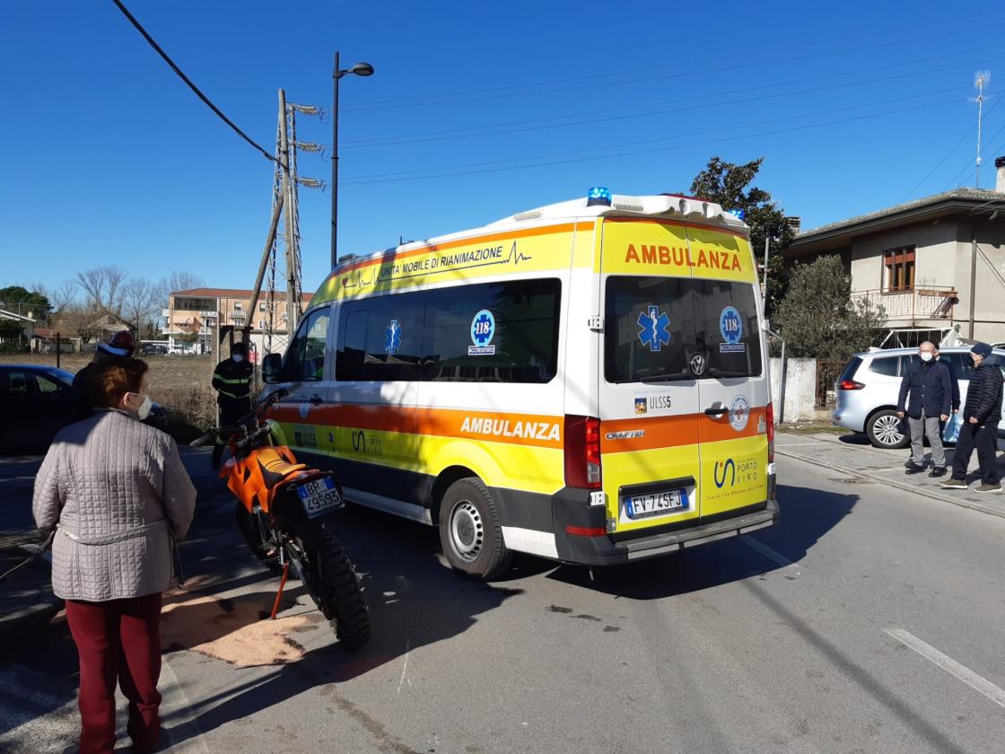 PORTO VIRO - Brutto incidente, questa mattina 26 febbraio a Porto Viro. In via Gorghi per cause al vaglio della polizia locale, si sono scontrate un'auto contro una moto tipo enduro.