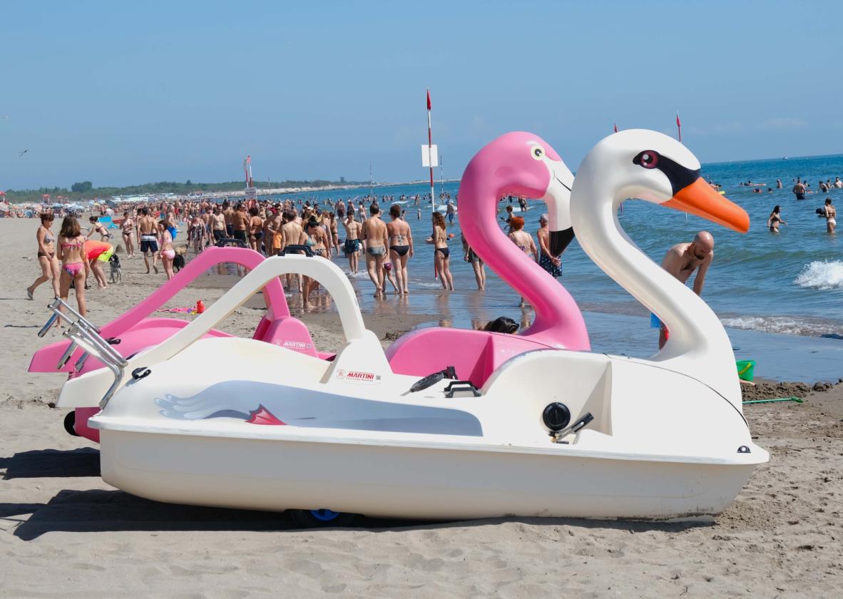 E allora nel week end tutti al mare, per cercare refrigerio dall’afa, andare a caccia del refolo di brezza marina, magari con un tuffo nelle acque del mediterraneo. Da Rosolina a Barricata, da Boccasette ad ogni lembo di sabbia pendolari della tintarella o turisti in soggiorno hanno riempito gli stabilimenti balneari. Per una passeggiata sulla sabbia, in compagnia di amici e familiari, per farsi accarezzare piedi e polpacci dall’acqua salata.