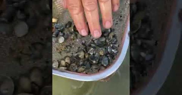 ROSOLINA - Denis Mantoan, del Consorzio Delta Nord, presidente della cooperativa Albarella, dimostra come le vongole seminate nella laguna Marinetta siano praticamente tutte morte. Un dramma per il mondo della pesca, causato dall'insabbiamento delle lagune che provoca una mancanza di ossigeno nell'acqua, e porta alla morte di piccoli molluschi seminati.