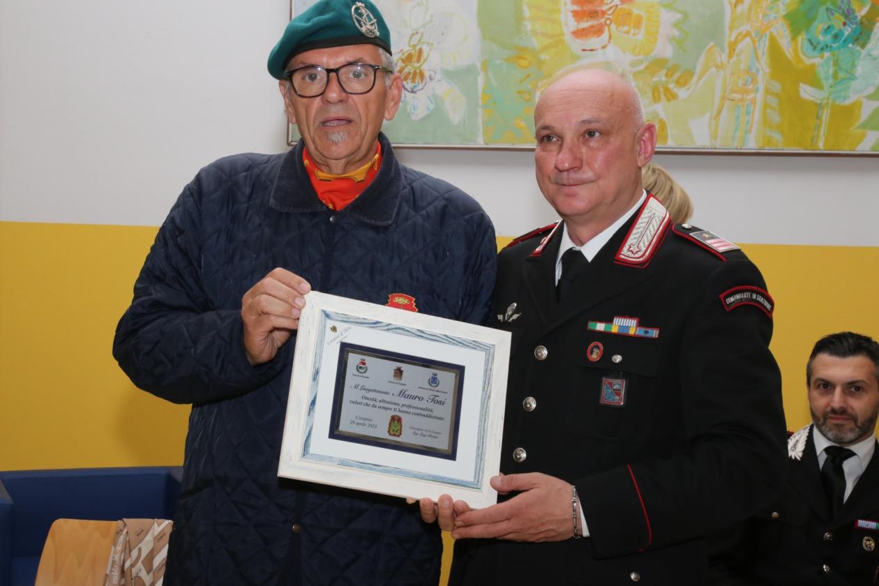 Che sono tutto quello che un carabiniere dovrebbe essere e tutto quello che un cittadino vuole che sia un carabiniere. Questo è quello che è Mauro Tosi, per 23 anni comandante della stazione carabinieri di Crespino, grado luogotenente - che è il massimo raggiungibile per un sottufficiale - ma per tutti il maresciallo, che alla fine è quella la parola magica, che vuole dire che sei l'autorità del paese e che il paese ti vuole bene.