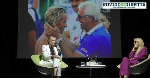 ALBARELLA - Una rosa per la più grande nuotatrice italiana e tra le più grandi del mondo, di tutti i tempi: si è conclusa così la serata organizzata all'arena spettacoli del centro sportivo dell'Isola di Albarella. Protagonista Federica Pellegrini, sul palco a parlare della sua storia sportiva e personale, racchiusa nel libro "Oro". L'appuntamento fa parte de "La Milanesiana", l'evento itinerante ideato e diretto da Elisabetta Sgarbi che ha fatto tappa per la prima volta in Polesine. La divina Pellegrini ha dialogato con Elena Stancanelli, vincitrice del Premio Campiello "Selezione giuria dei letterati", che l'ha incalzata sui momenti più importanti della vita di atleta e di donna. A fare gli onori di casa Emma Marcegaglia, vicepresidente e ceo di Marcegaglia Group, a introdurre l'appuntamento, invece, Elisabetta Sgarbi.