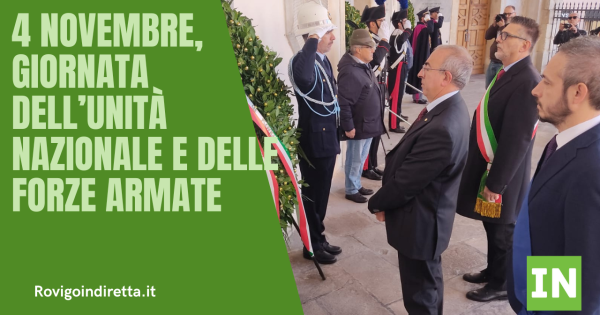 ROVIGO - Anche Rovigo ha celebrato la Giornata dell’Unità Nazionale e delle Forze Armate. In piazza Vittorio Emanuele II, si sono riuniti questa mattina i rappresentanti delle Istituzioni, delle Amministrazioni locali e delle Amministrazioni pubbliche. Dopo l'ingresso del picchetto Interforze, delle rappresentanze delle associazioni Combattentistiche e d'Arma e dei Gonfaloni degli Enti locali, la cerimonia è proseguita con la resa degli onori al Prefetto Clemente di Nuzzo da parte del picchetto Interforze. Ha fatto seguito l'alzabandiera, poi la deposizione delle corone al monumento ai Caduti. A seguire la lettura dei messaggi del Presidente della Repubblica Sergio Mattarella e del Ministro della Difesa Guido Crosetto e le allocuzioni del sindaco di Rovigo Edoardo Gaffeo e del presidente della Provincia di Rovigo Enrico Ferrarese. Per concludere gli interventi con la lettura di un elaborato da parte degli studenti. Al termine della cerimonia si è tenuta una breve esibizione musicale degli allievi del conservatorio “F. Venezze” di Rovigo
