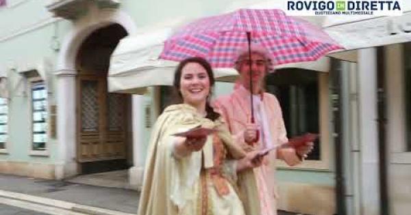 ROVIGO - Una decina di attori delle compagnie di Fita Rovigo, la Federazione italiana teatro amatori, ha sfidato il maltempo domenica 7 gennaio mattina, animando il centro storico della città per promuovere la quindicesima edizione di “Incontriamoci a teatro”, la rassegna di prosa in programma dal 14 gennaio all’11 febbraio al cinema teatro Duomo. Gli attori amatoriali, in costume di scena, hanno presentato ai rodigini che passeggiavano in città il programma della rassegna, sempre molto attesa dal pubblico: cinque domeniche pomeriggio alle 16.30, all’insegna del divertimento e della leggerezza sia in lingua italiana che in dialetto. A presentare l'iniziativa Luca Demetri, del direttivo di Fita Rovigo.